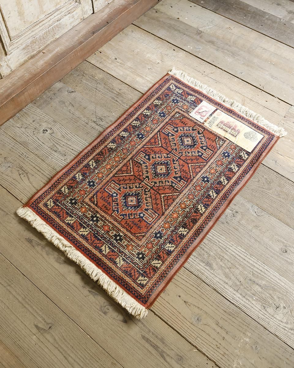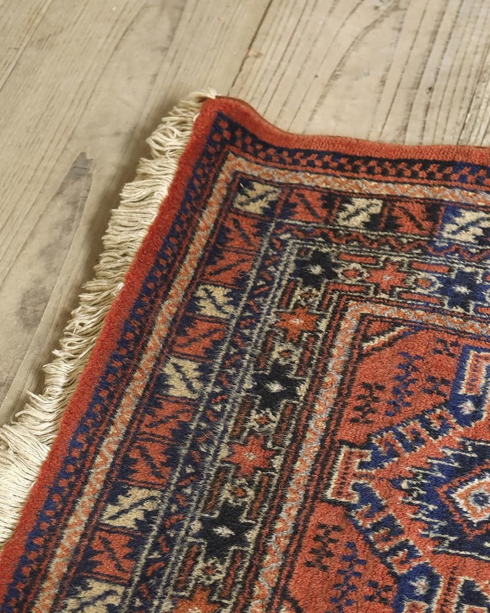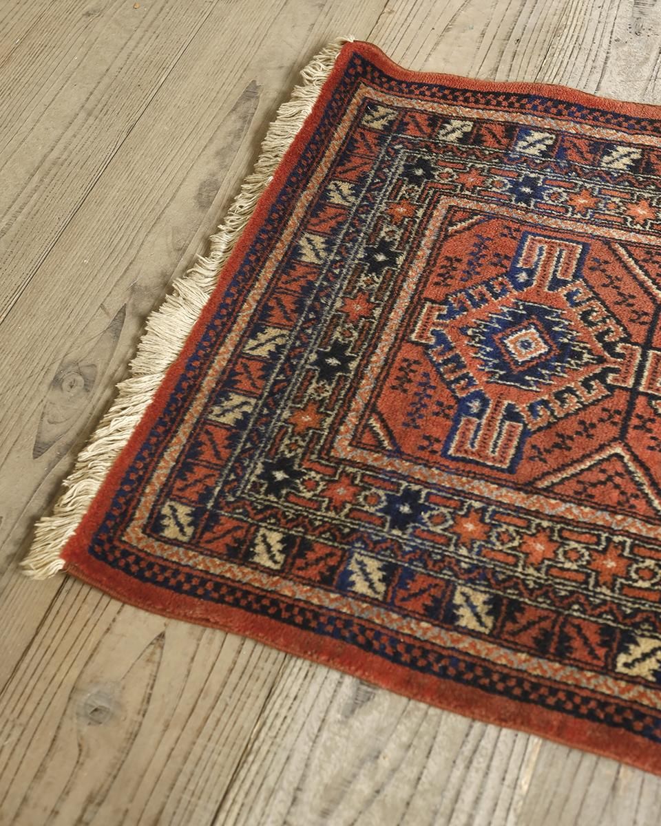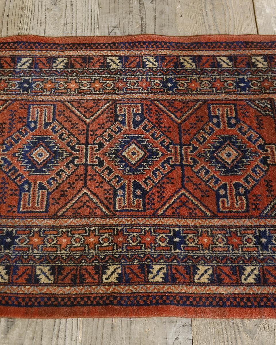 From : Belgium ベルギーで買い付けた1940年代頃のウール製ラグです。 ベロウジ(Beloudj)カーペットとしてイランで手織りされたもので、 礼拝堂などで使用されていたものとなります。 複数のドラゴンが配われた幾何学的なデザインと迫力ある色使いが目を惹くひと品です。 商品はアンティーク品のため、お写真では伝わり難い色褪せや汚れ、 解れや毛羽立ちなどがございます。 追加のお写真をご希望の方はお気軽にお問合せくださいませ。