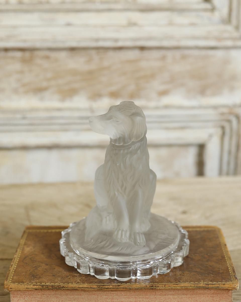 フランスより届いたガラス素材で創られた犬のオブジェ。