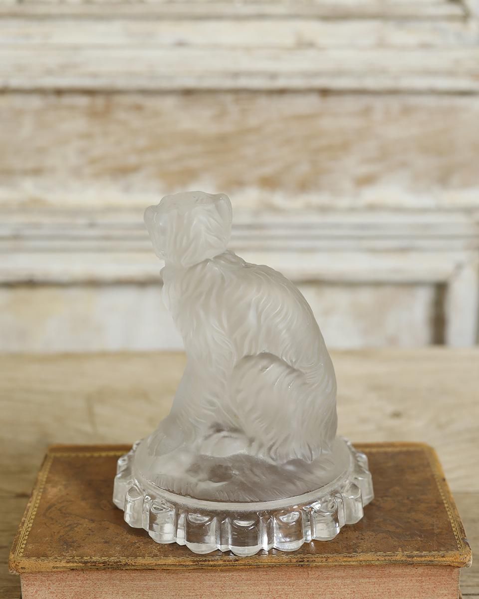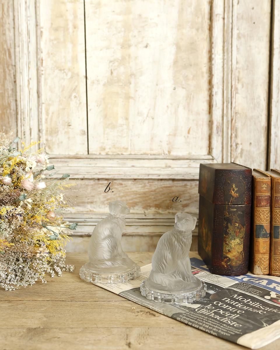 フランスより届いたガラス素材で創られた犬のオブジェ。
