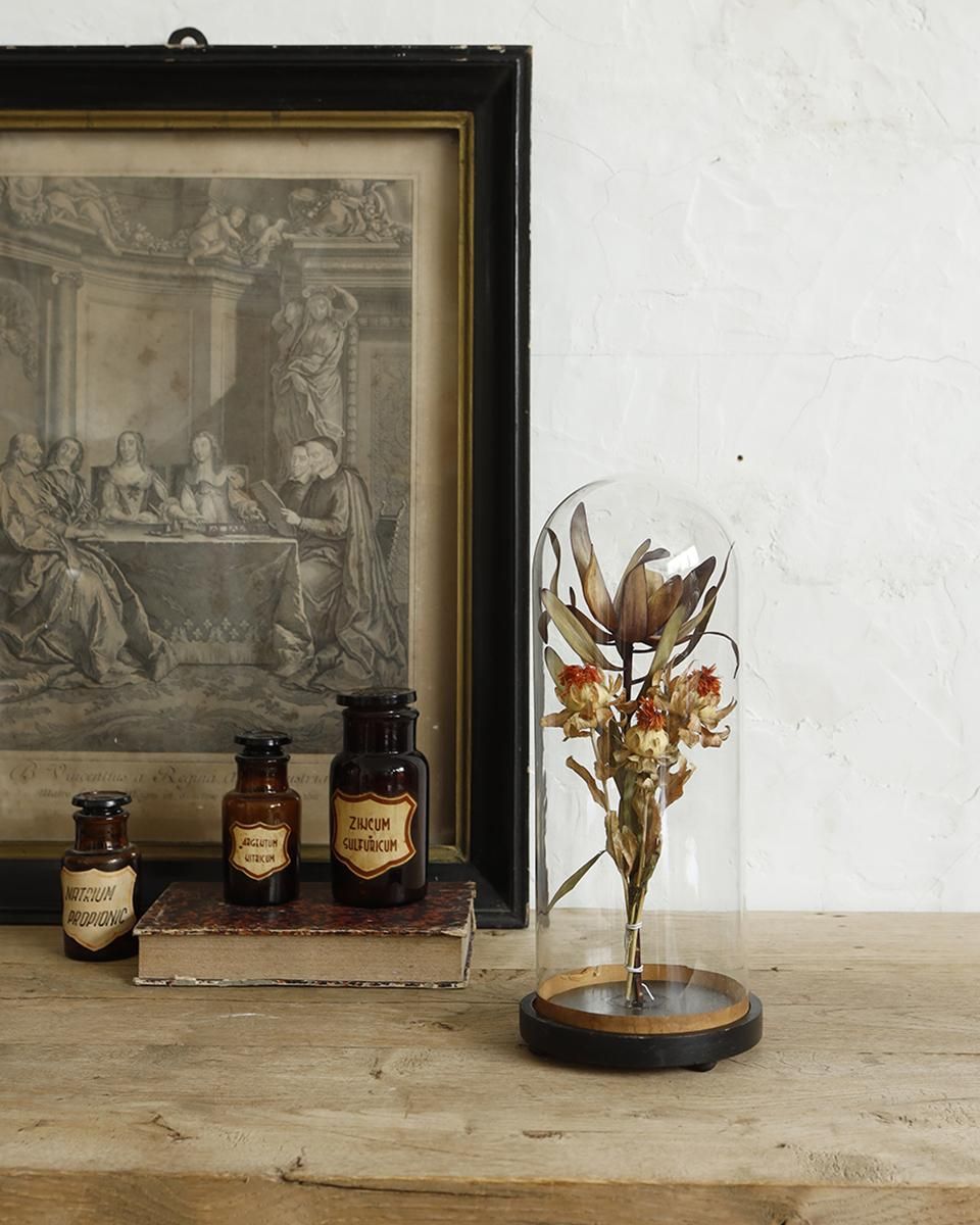ガラスドームはお気に入りのコレクションアイテムやドライフラワー