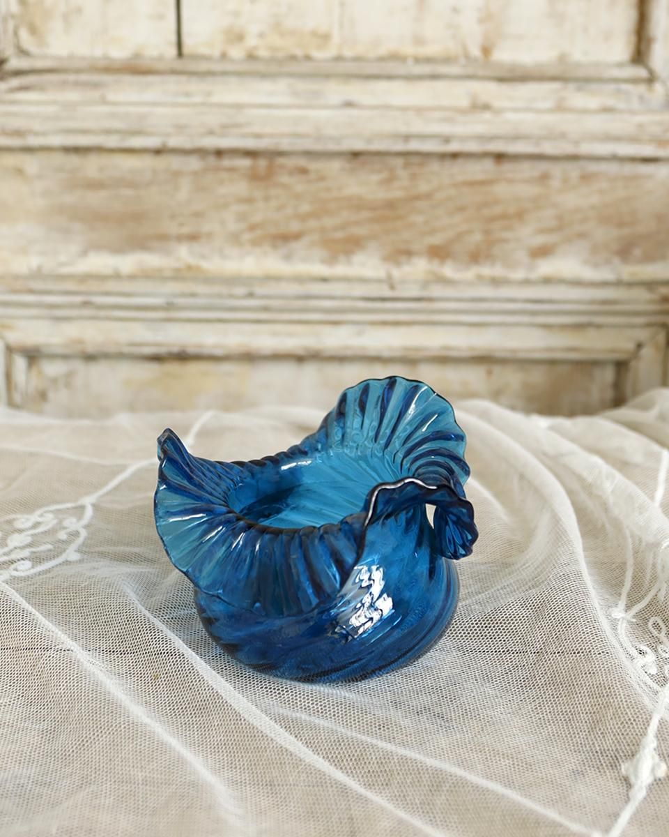 アンティークの吹きガラス特有の気泡や皺、表面の揺らぎなど、