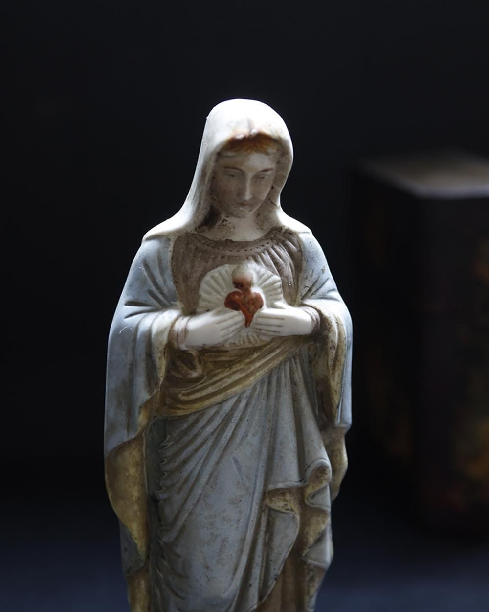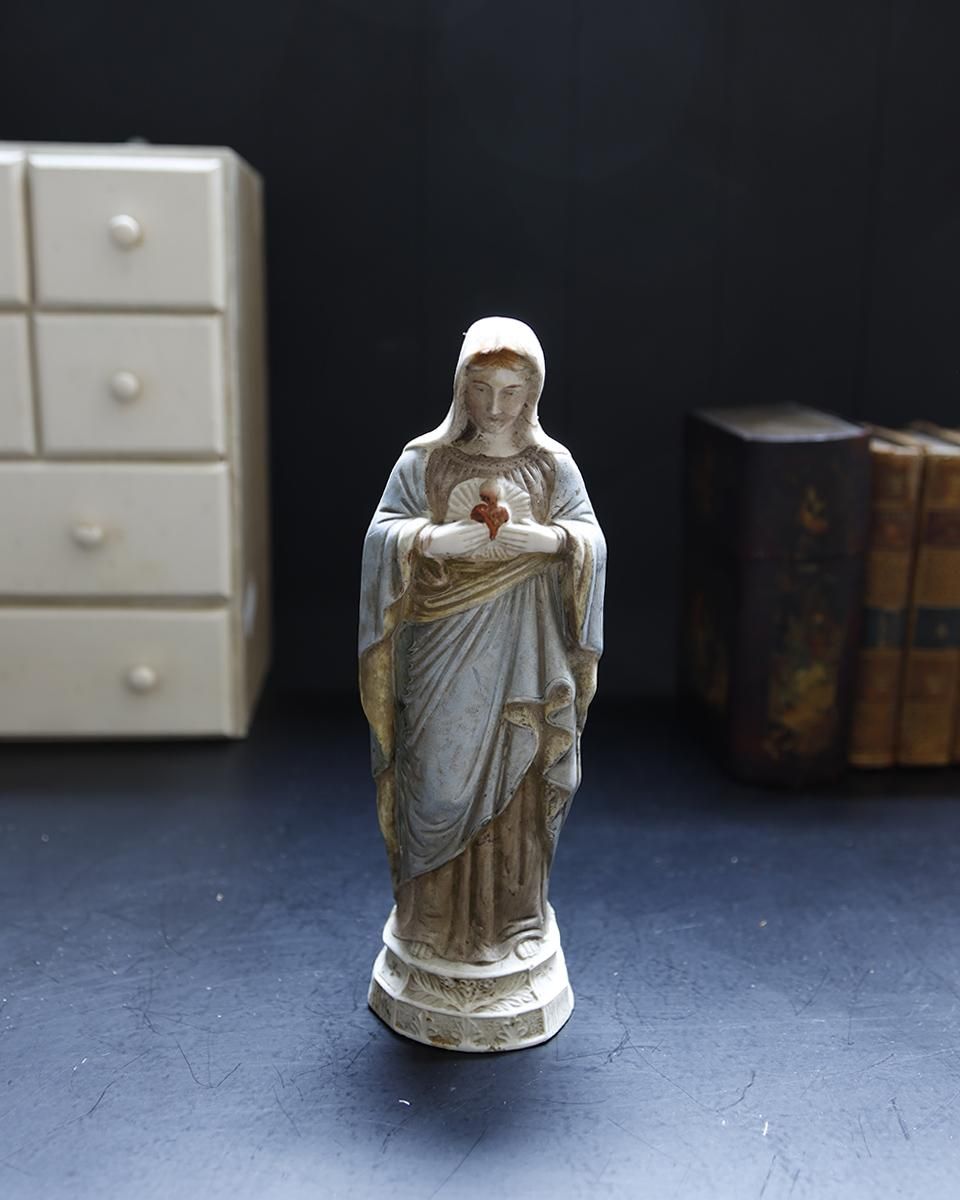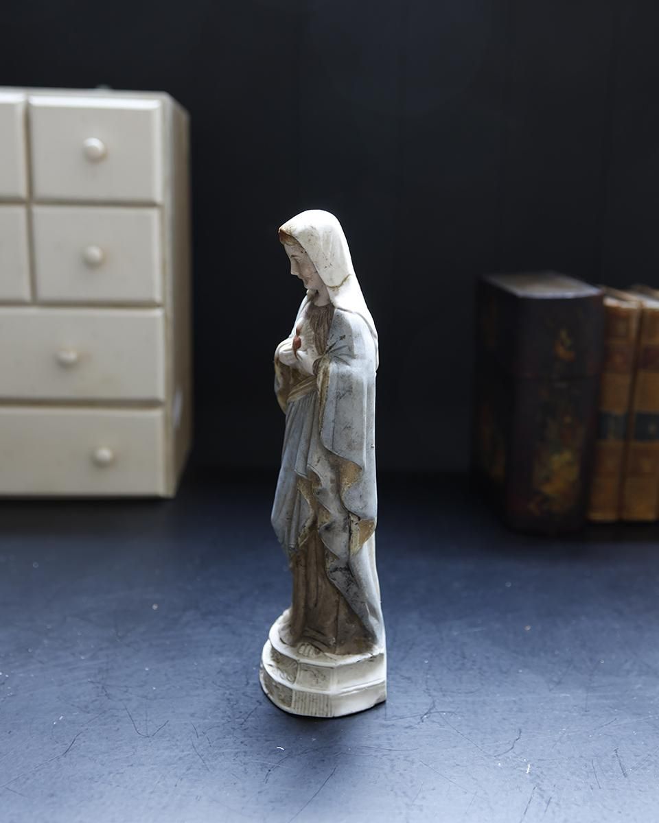 From : France フランスの蚤の市で見つけた修道女がモデルの石膏像。 古い年代のもので経年によって現れたくすみ具合や 彩色の剥がれなど、味わい深い風合いをご堪能いただけます。 独特な雰囲気を醸し出した存在感のあるひと品で、 レリジャスなインテリアのオーナメントとして世界観を演出します。 商品はアンティーク品のため、お写真では伝わり難い 色褪せや小傷、緑青などがございます。 追加のお写真をご希望の方はお気軽にお問合せくださいませ。
