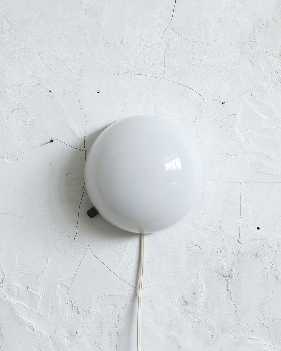 滑らかな曲線を描いた艶のある乳白色のガラスシェードが