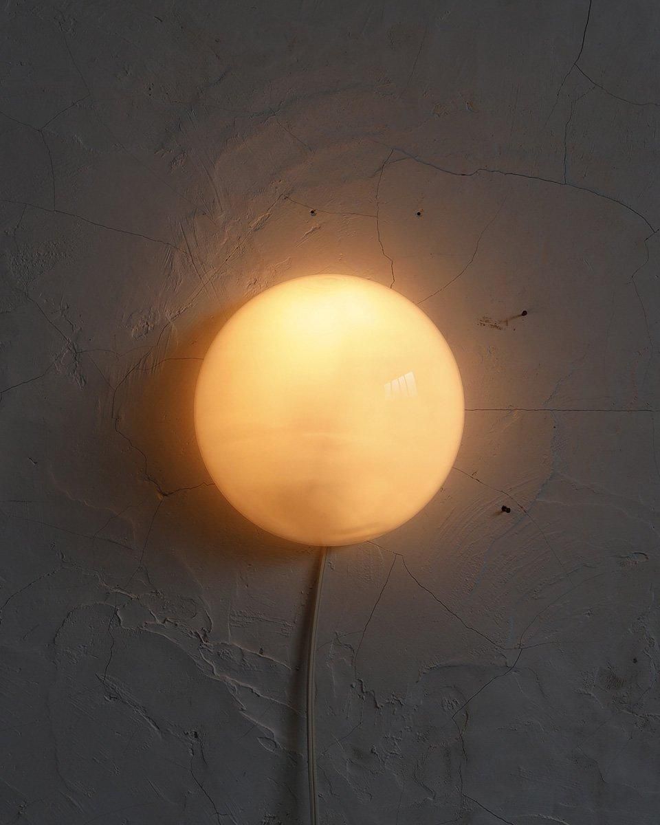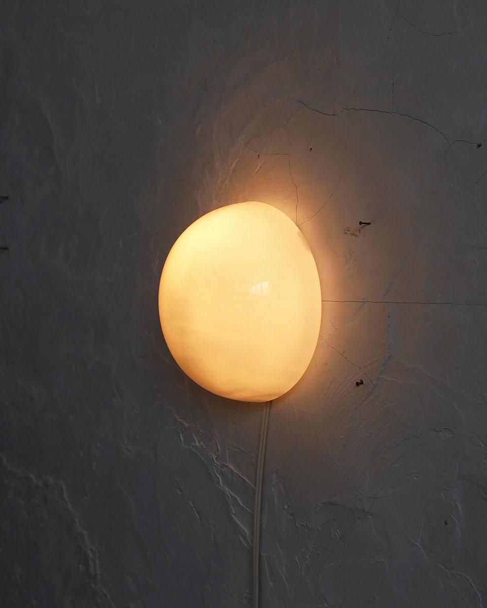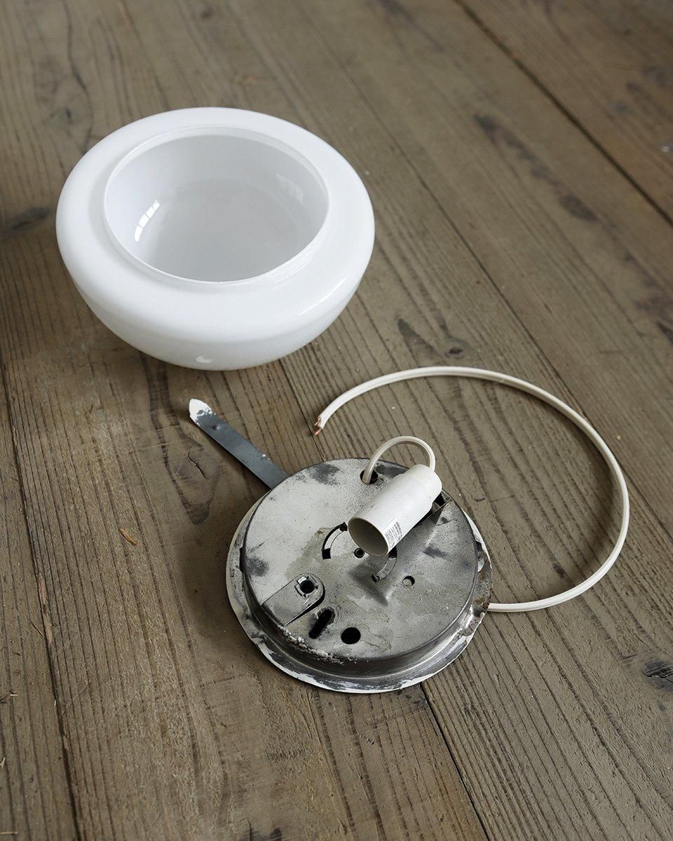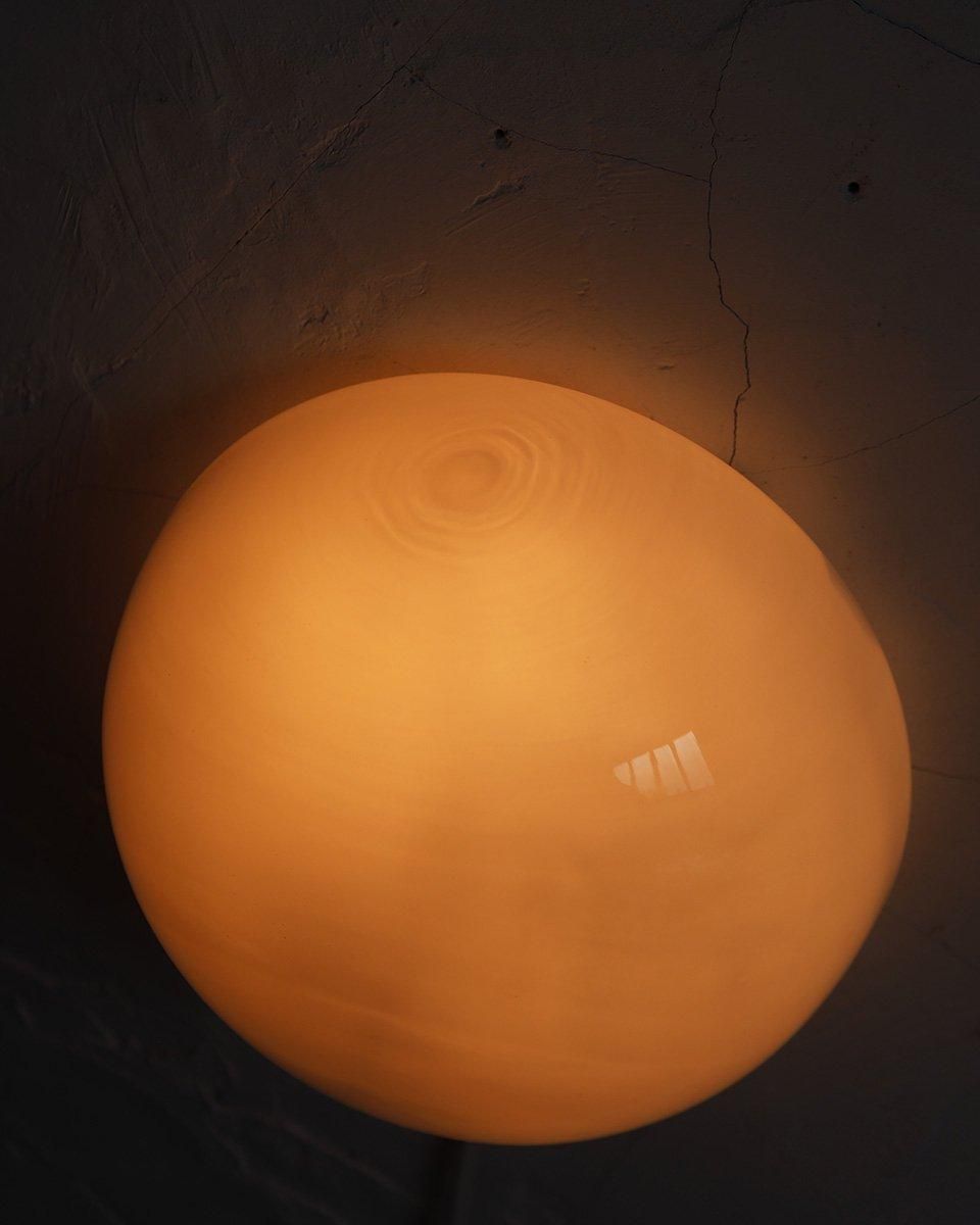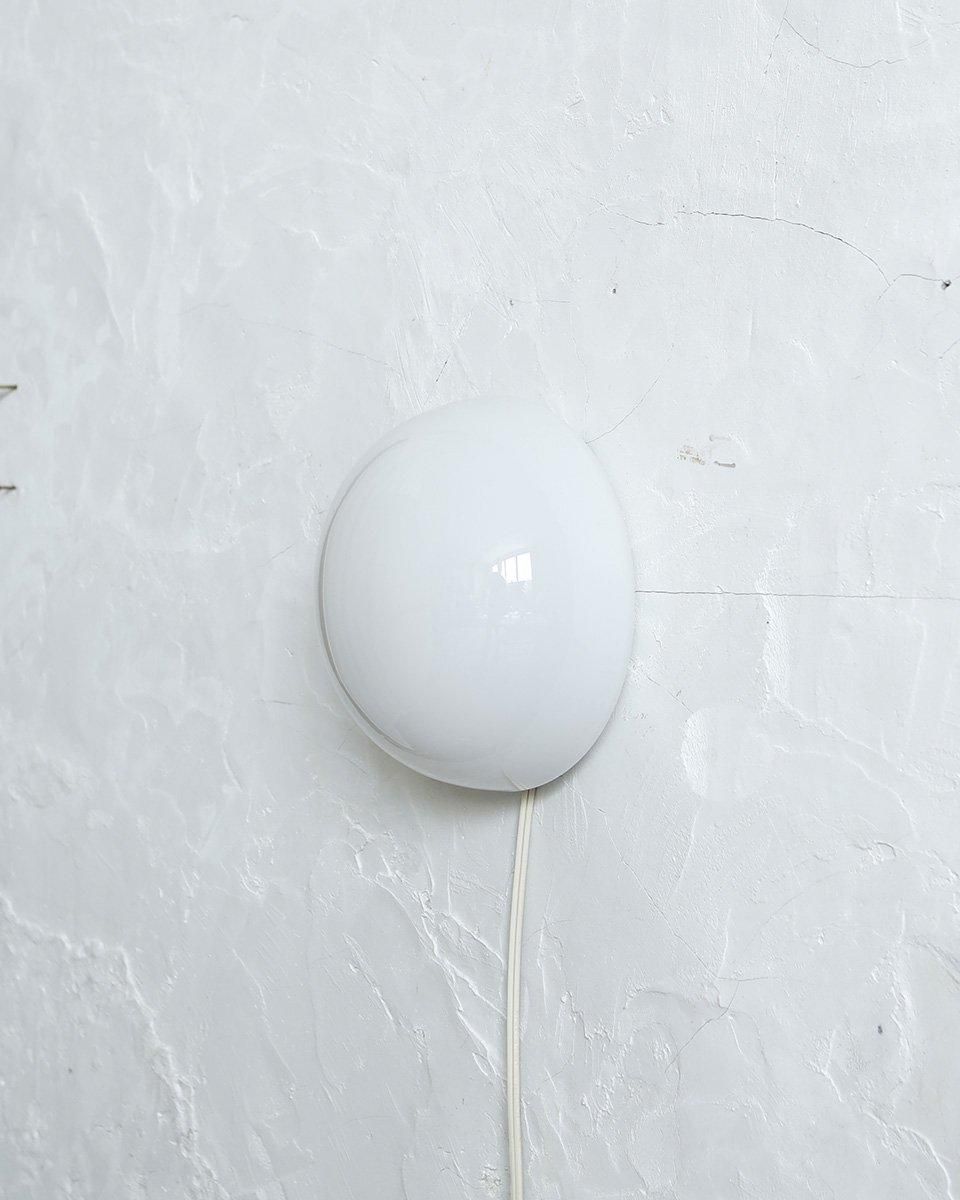 滑らかな曲線を描いた艶のある乳白色のガラスシェードが