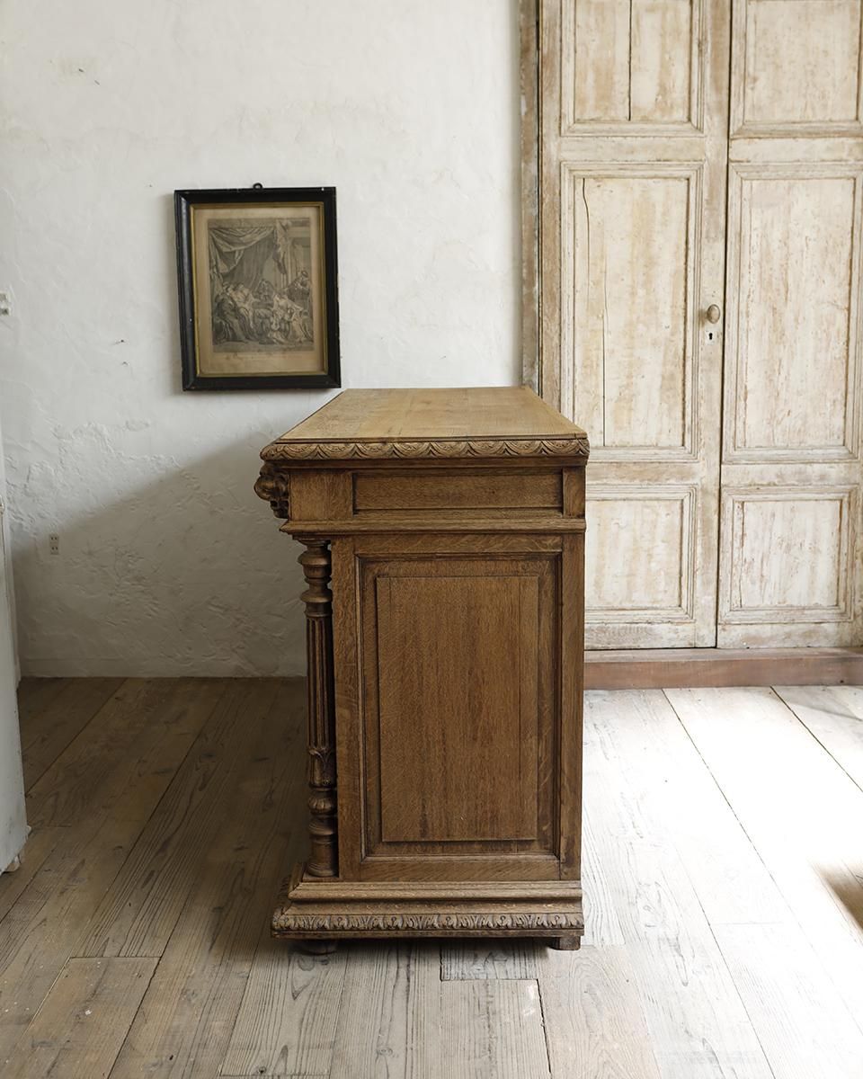 ディテールで、天板の縁取りには草花モチーフが配われたルネット
