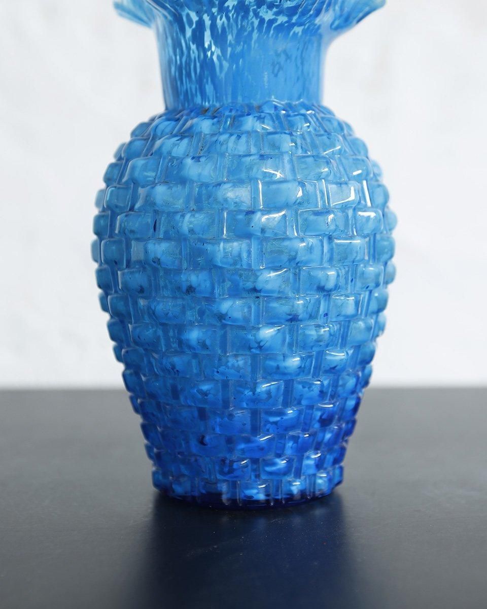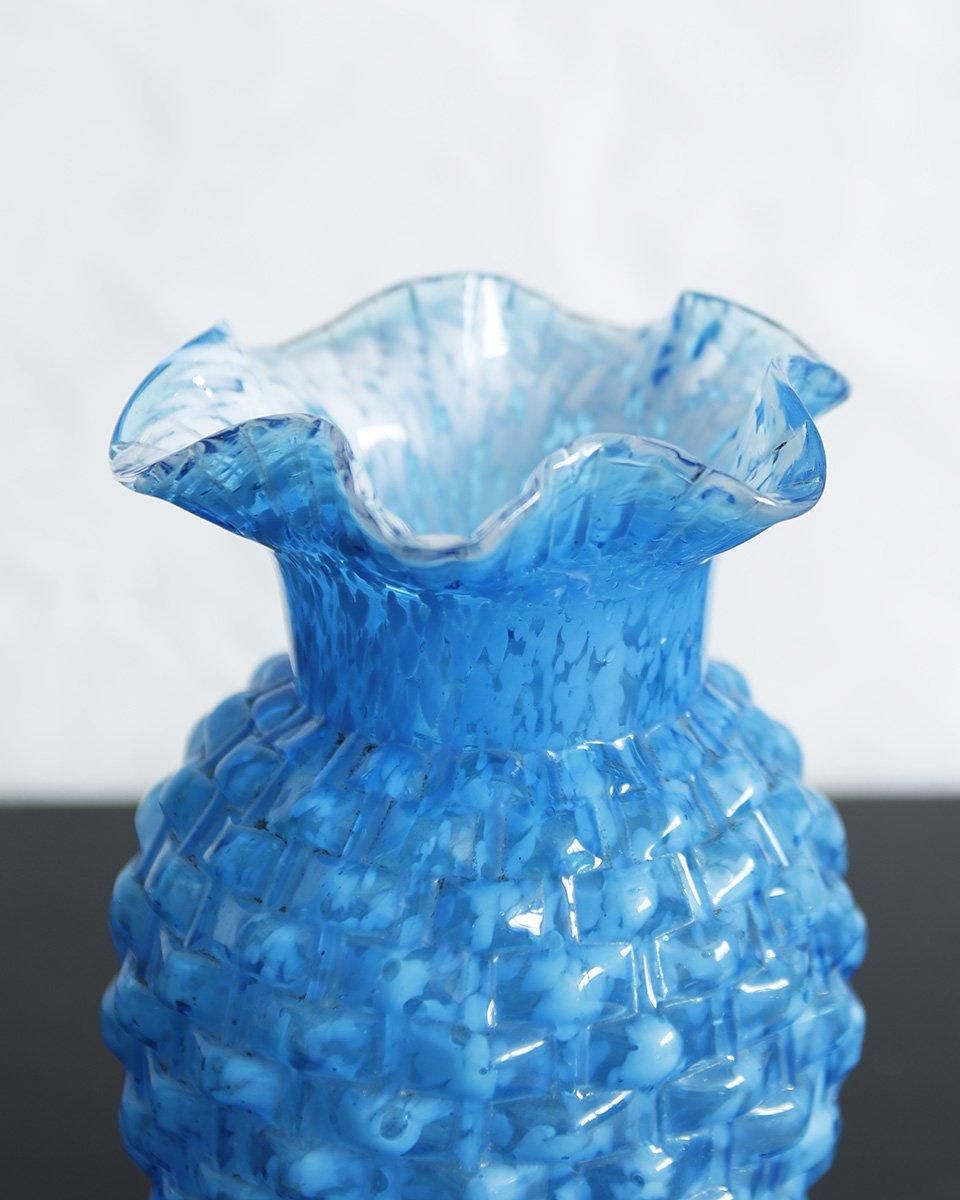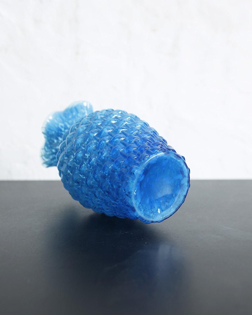 鮮やかなブルーのガラスに凸凹した表面の