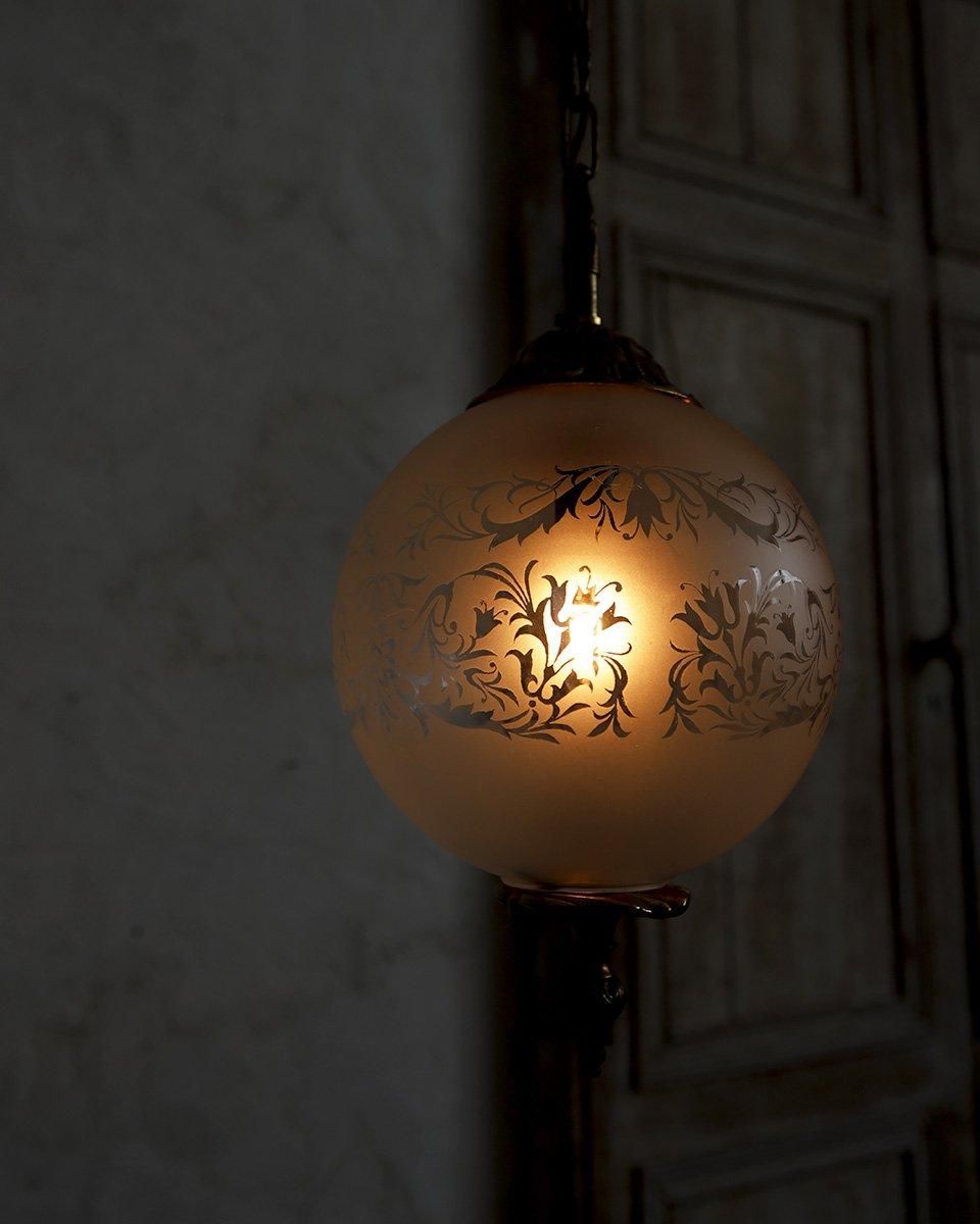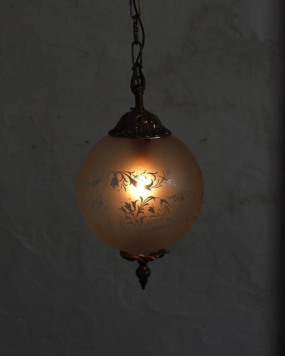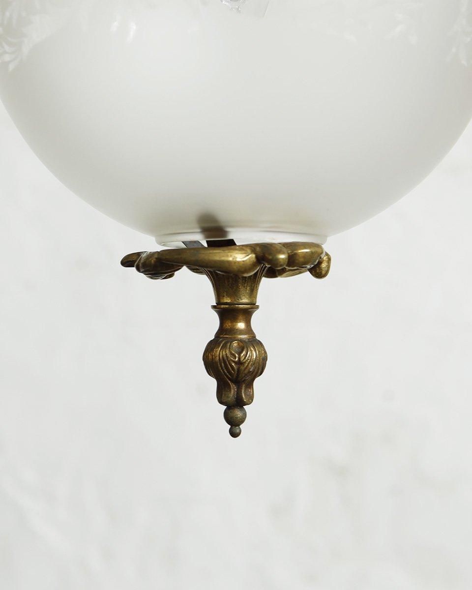 ボール型のすりガラスに、美しい真鍮の装飾が