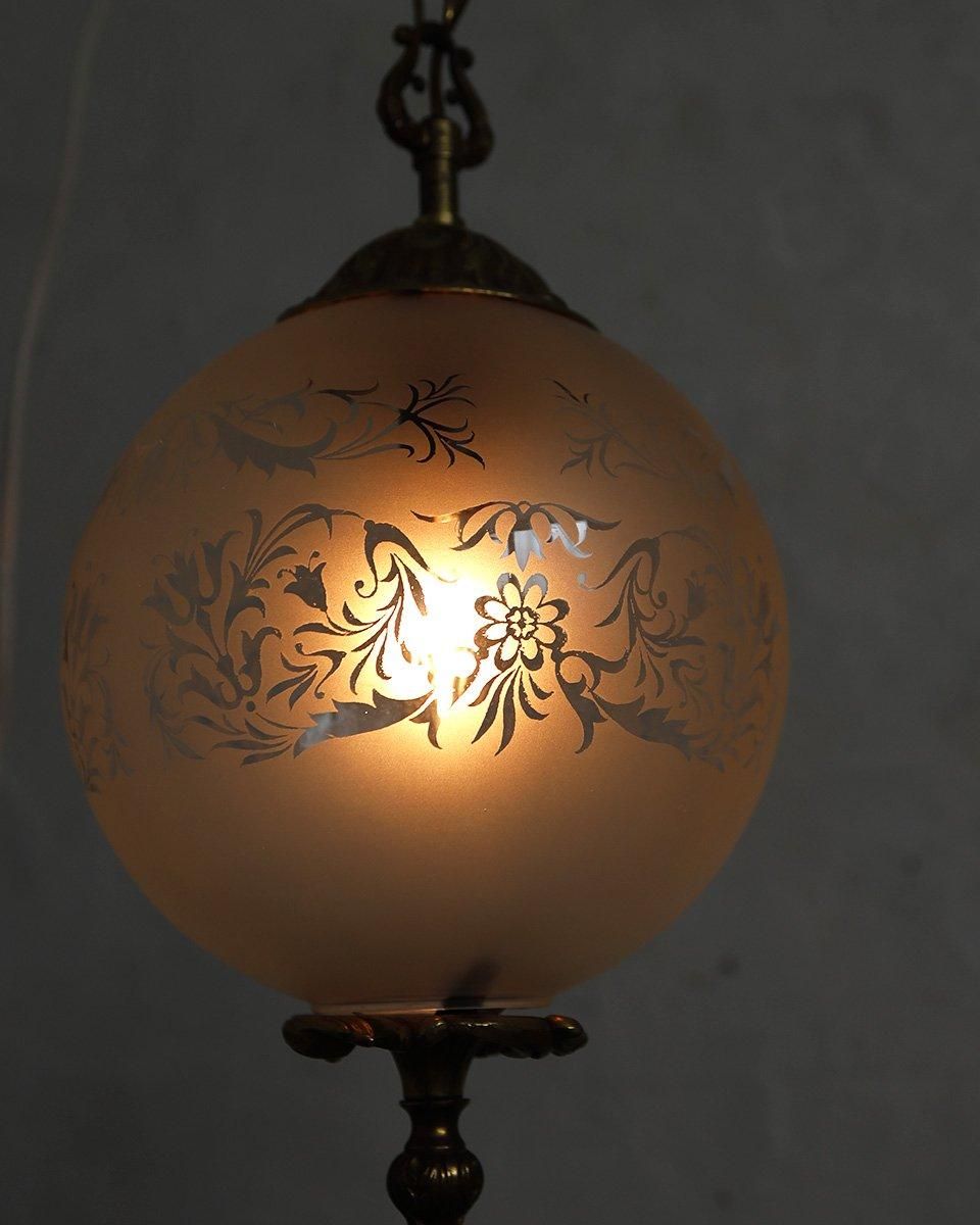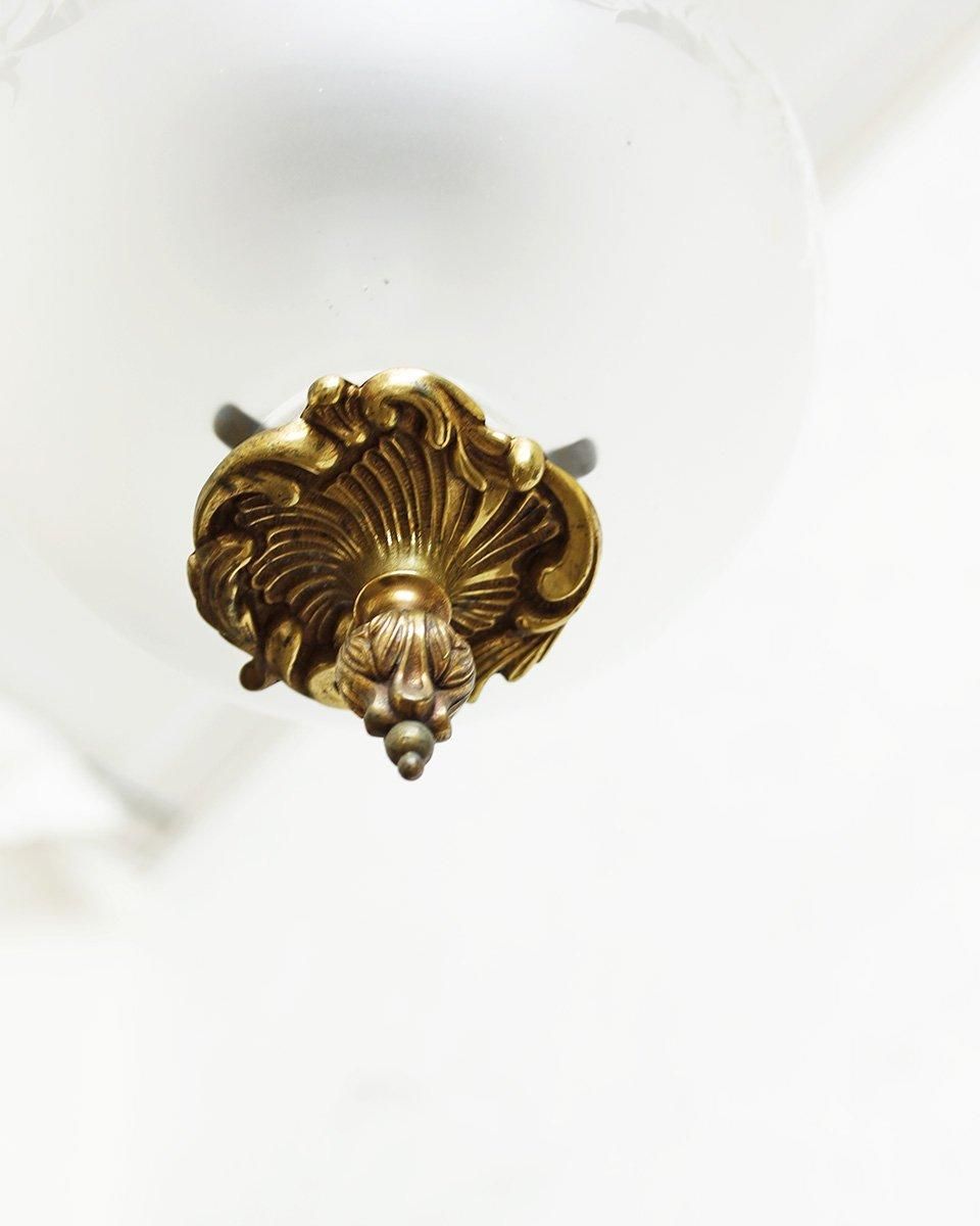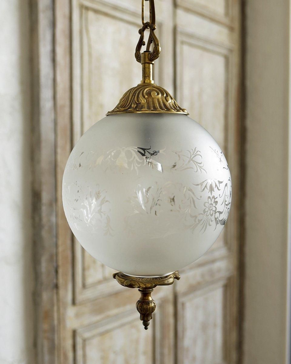ボール型のすりガラスに、美しい真鍮の装飾が
