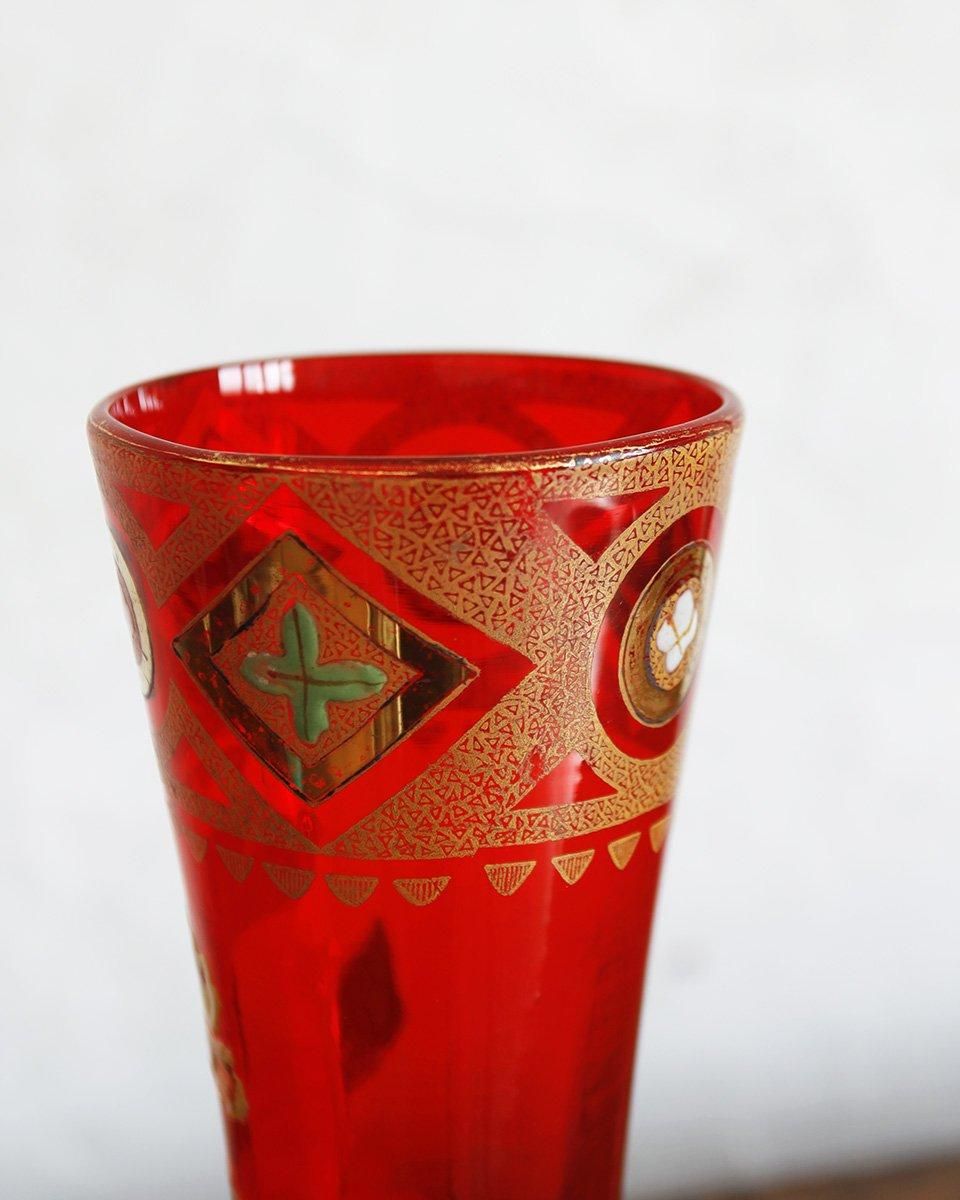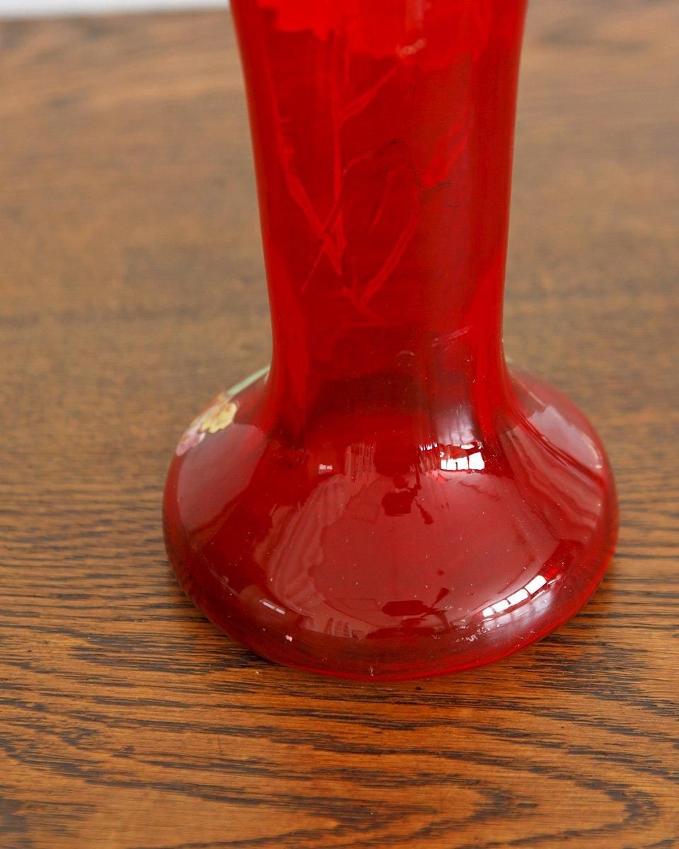 立体的に描かれており、透明度の高い赤いカラーガラス