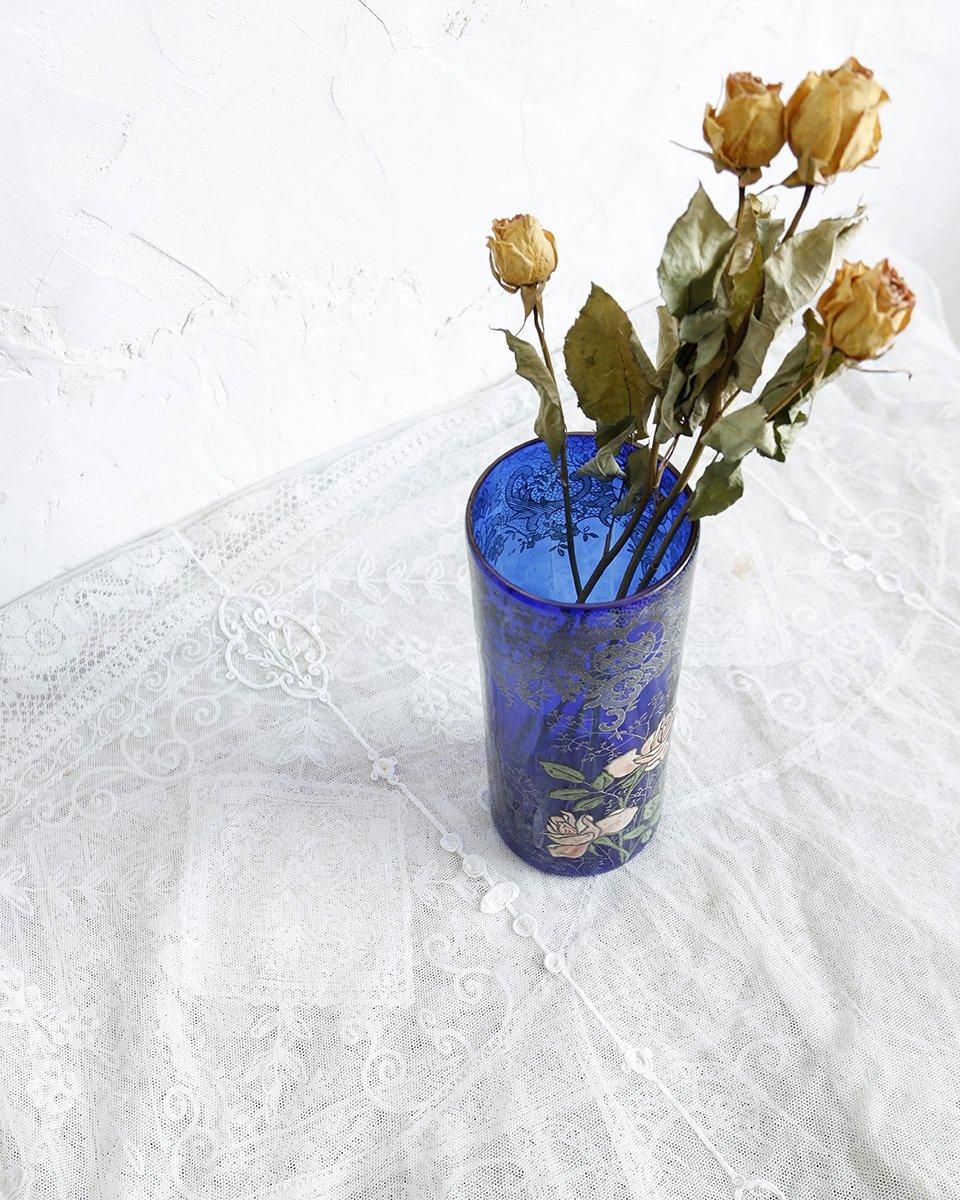 深いブルーのガラスベースに、ルイ15世様式のデザインを