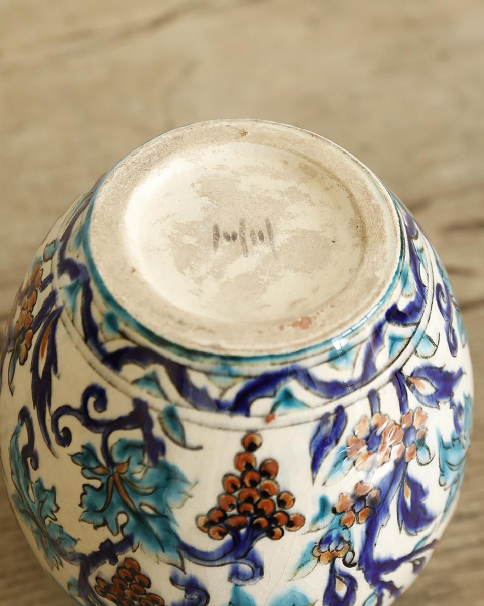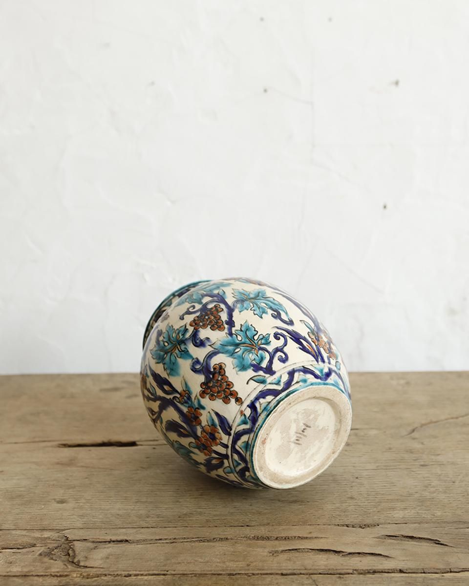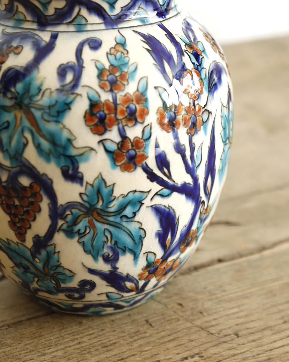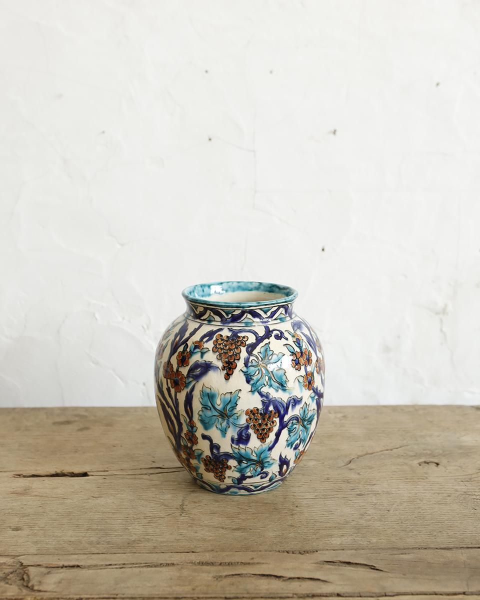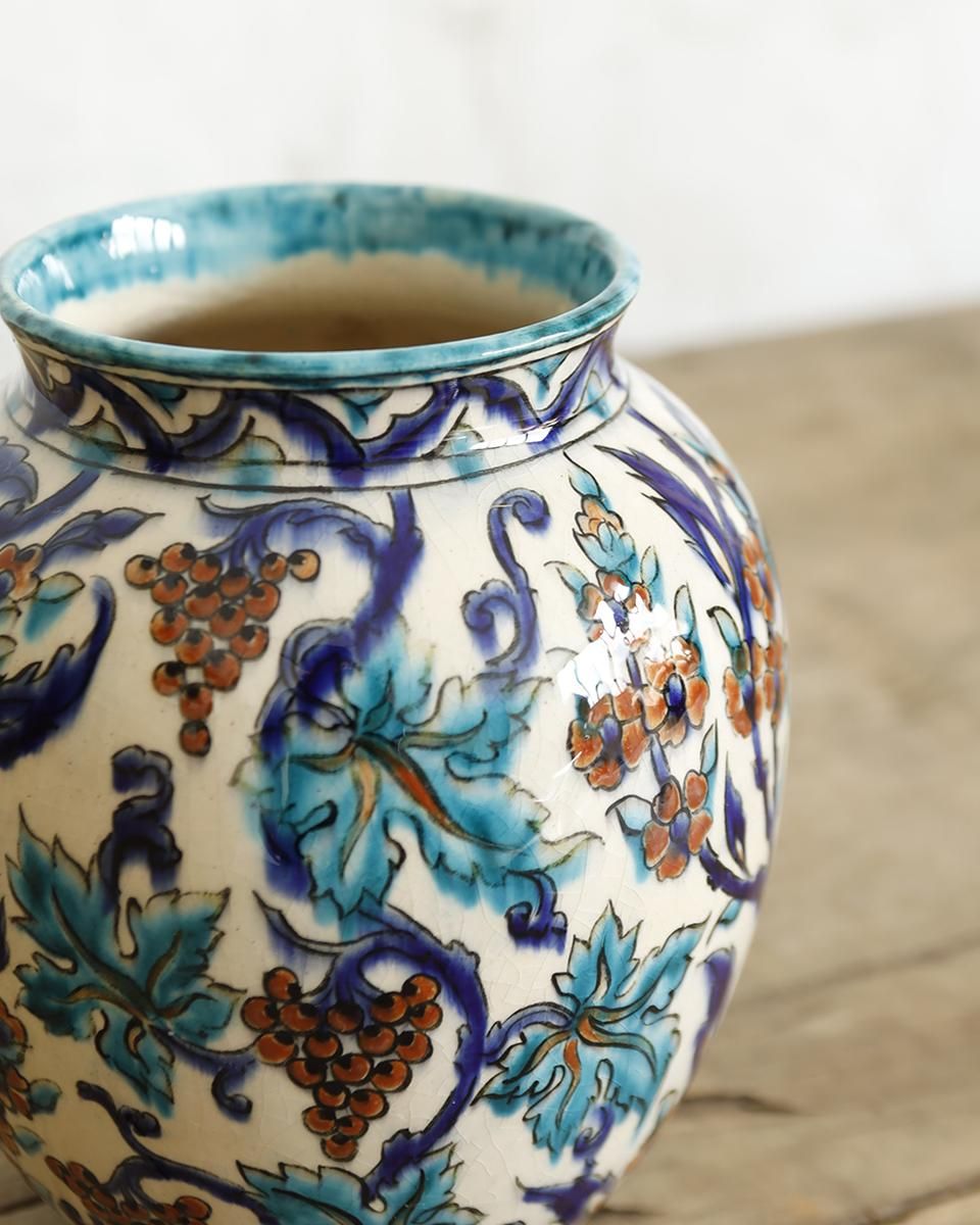 生命力溢れる葡萄が全面に描かれたフラワーベース。