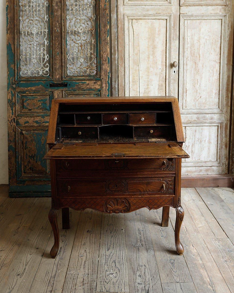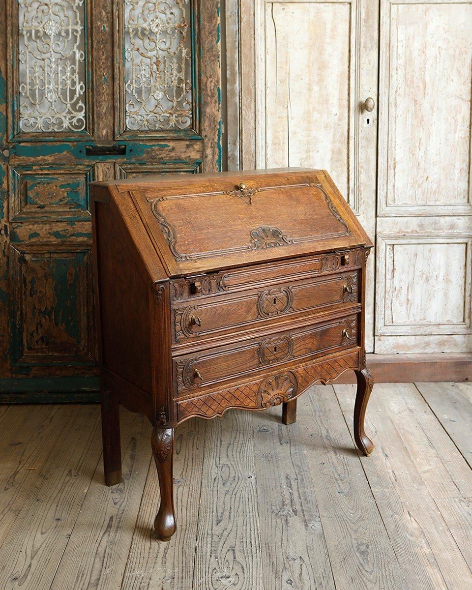 真鍮製の飾りやさりげない彫刻の装飾が目を惹きます。