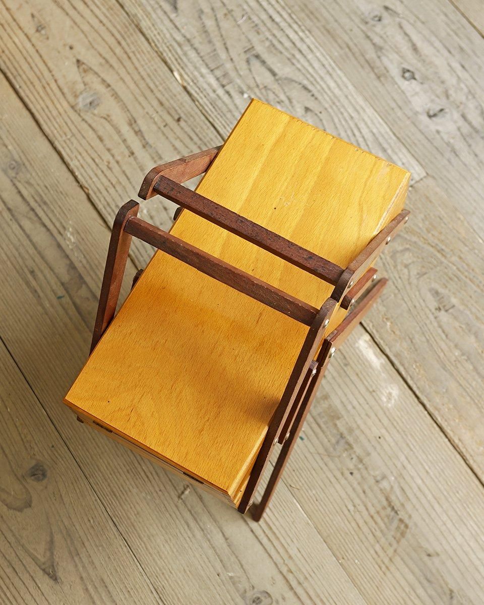 取っ手を両サイドに開くと、収納部分が階段のように