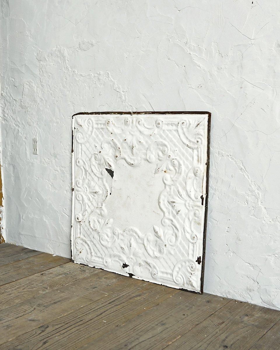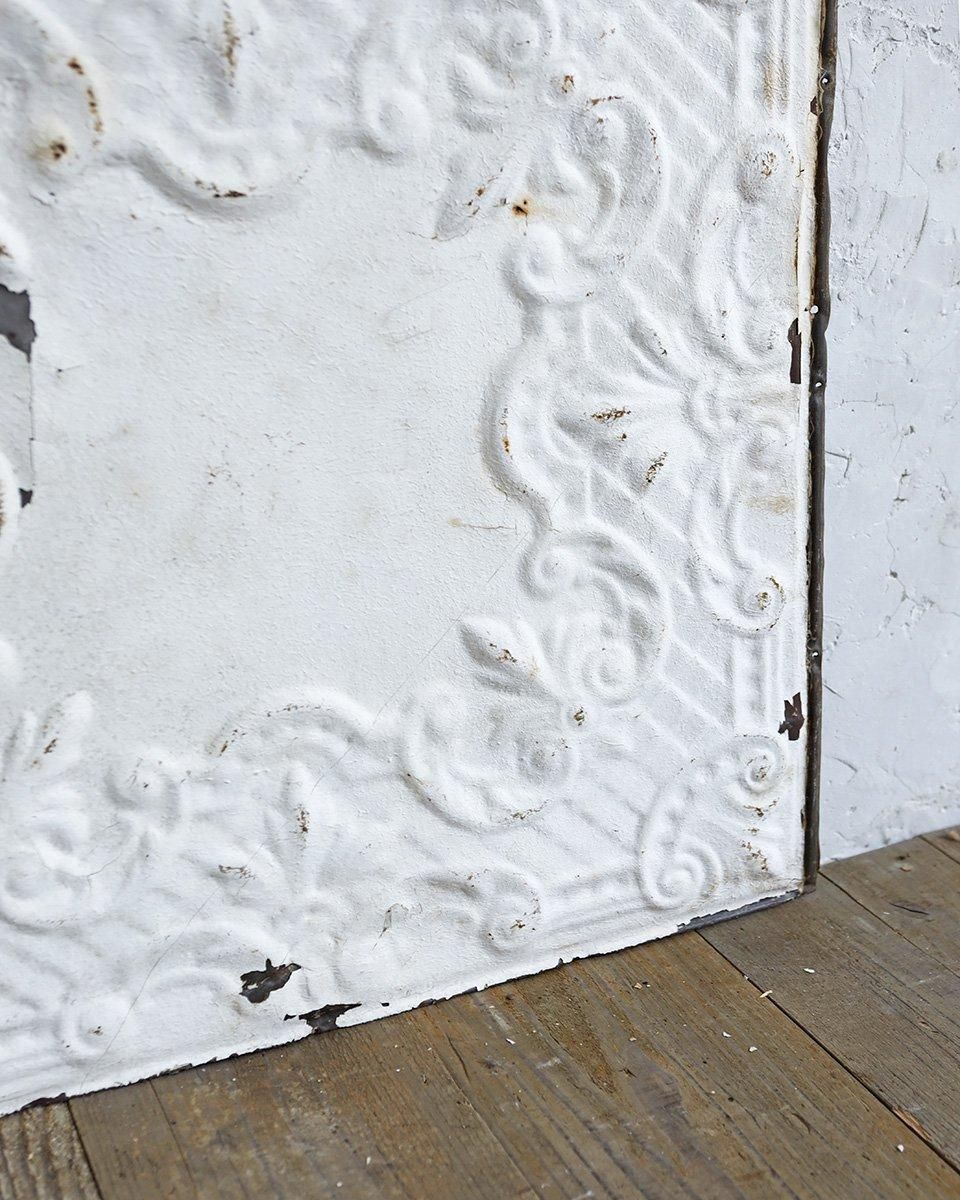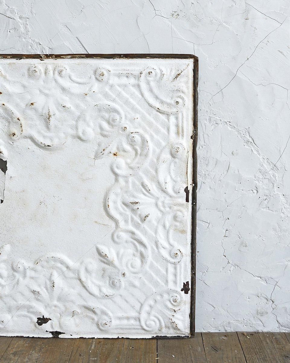 ホワイトペイントが施されたブリキ製のパネルに