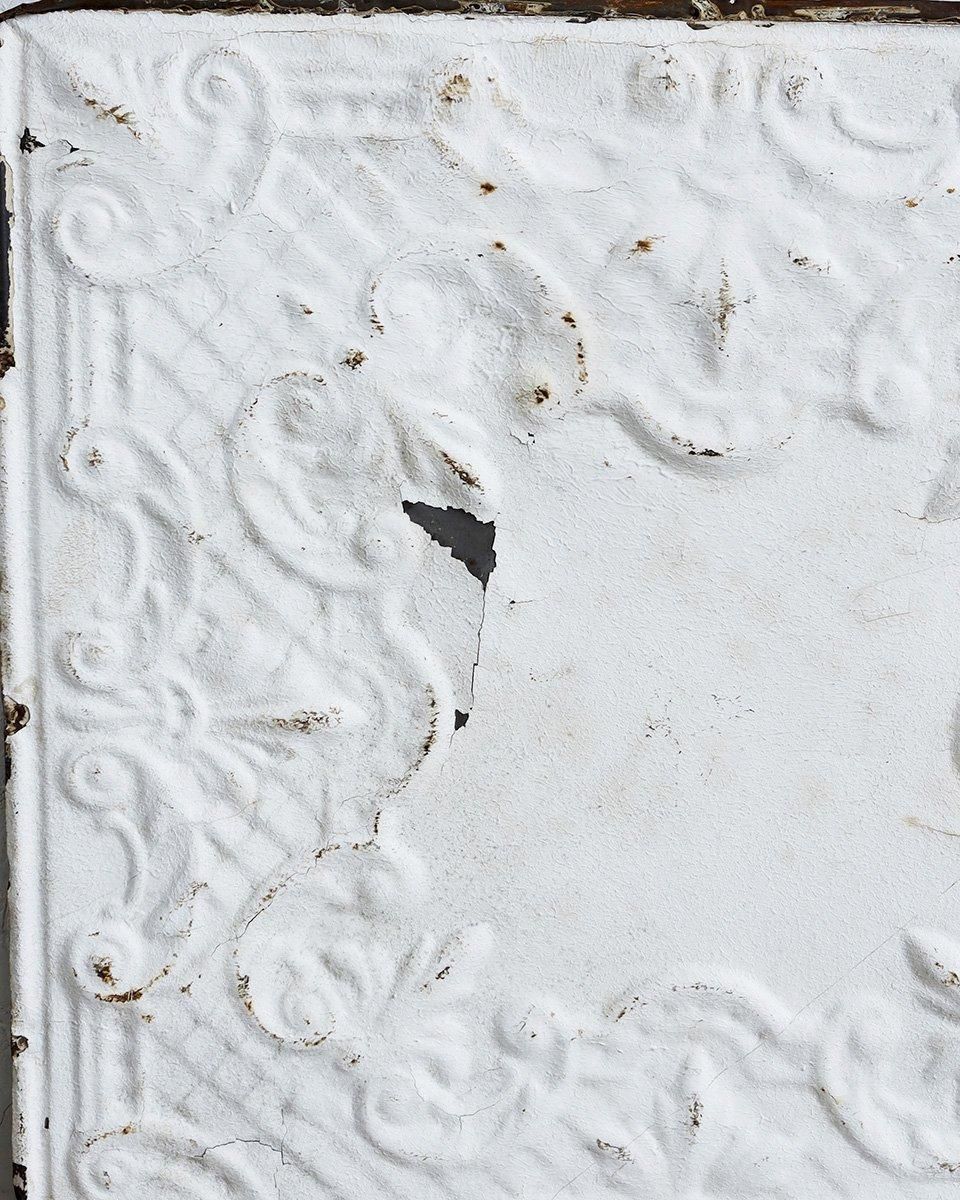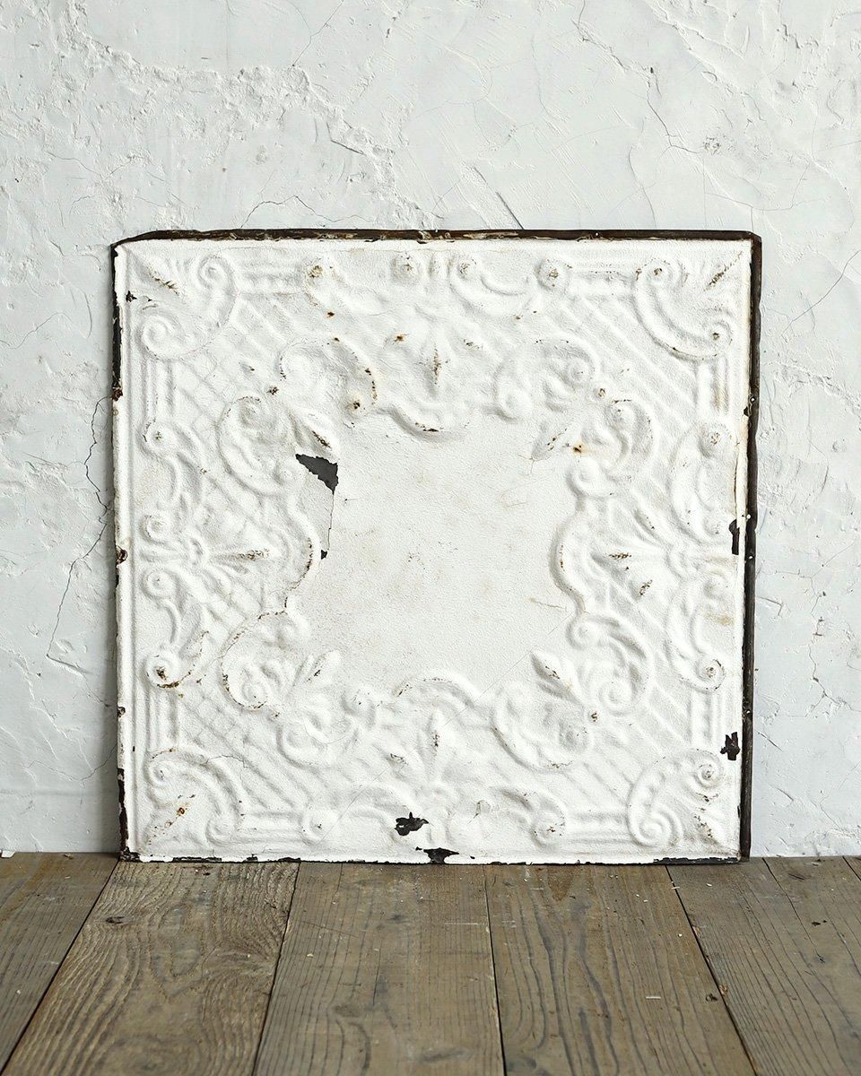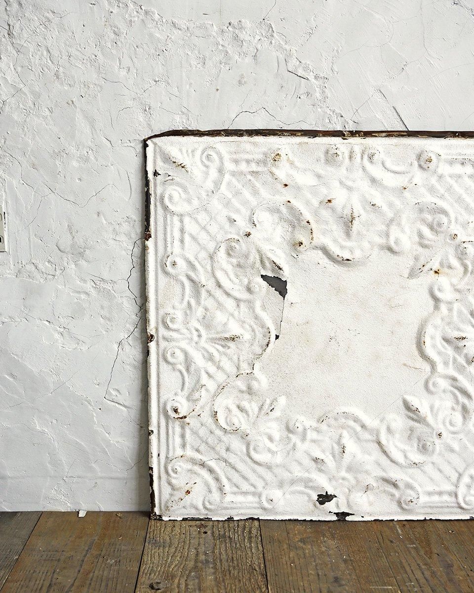 ホワイトペイントが施されたブリキ製のパネルに