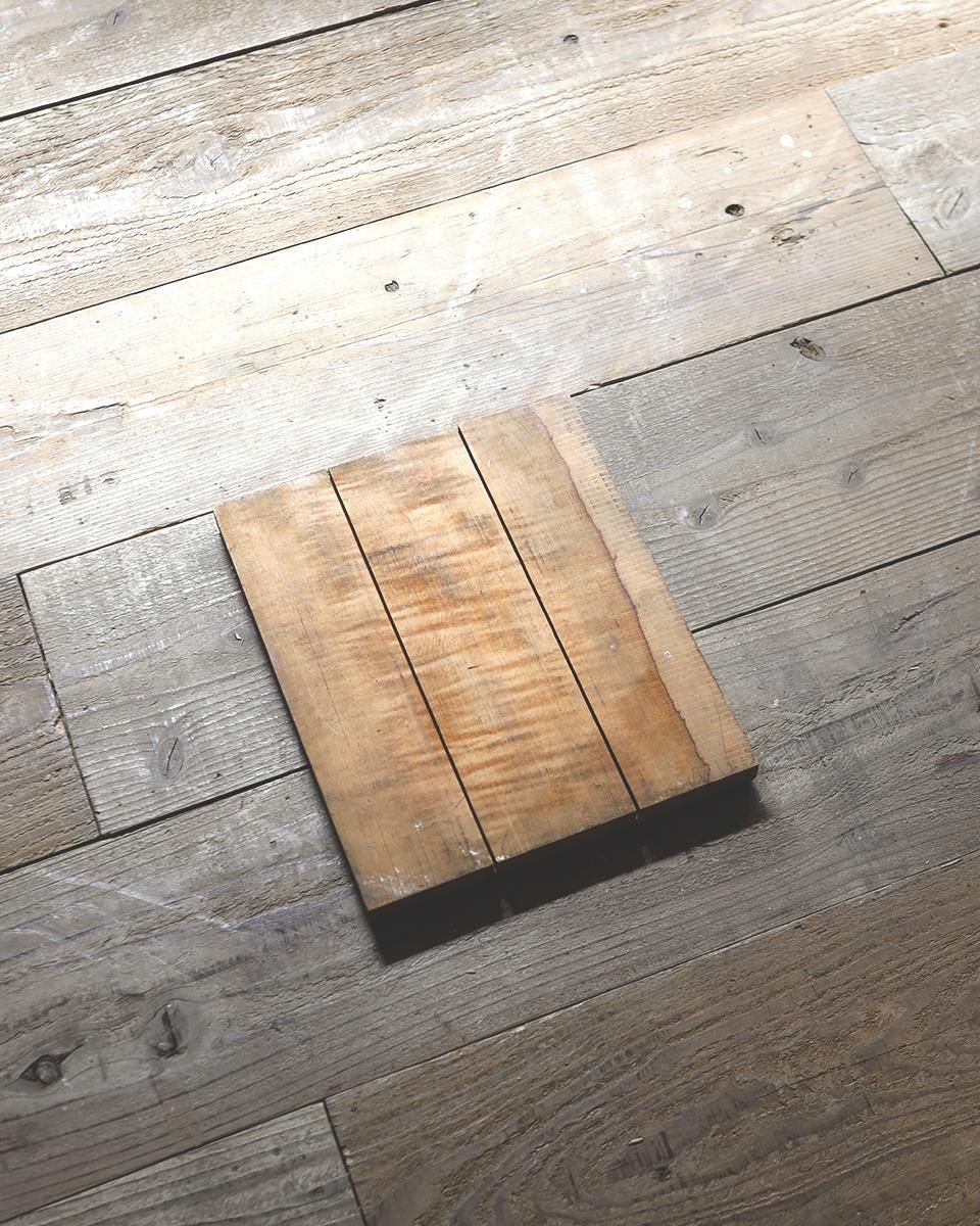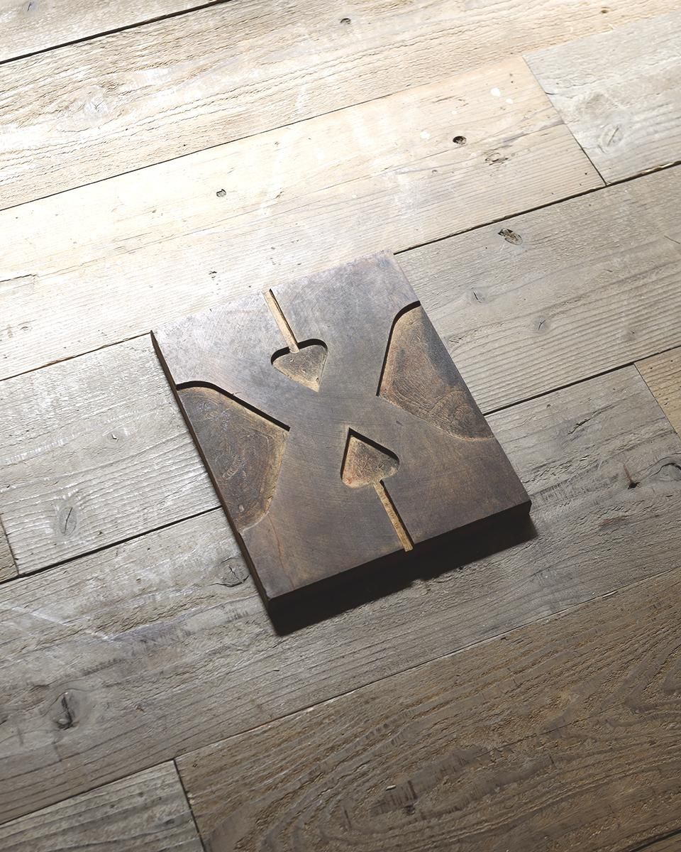 長い年月を経た木の質感とインク痕の掠れた黒ずみが