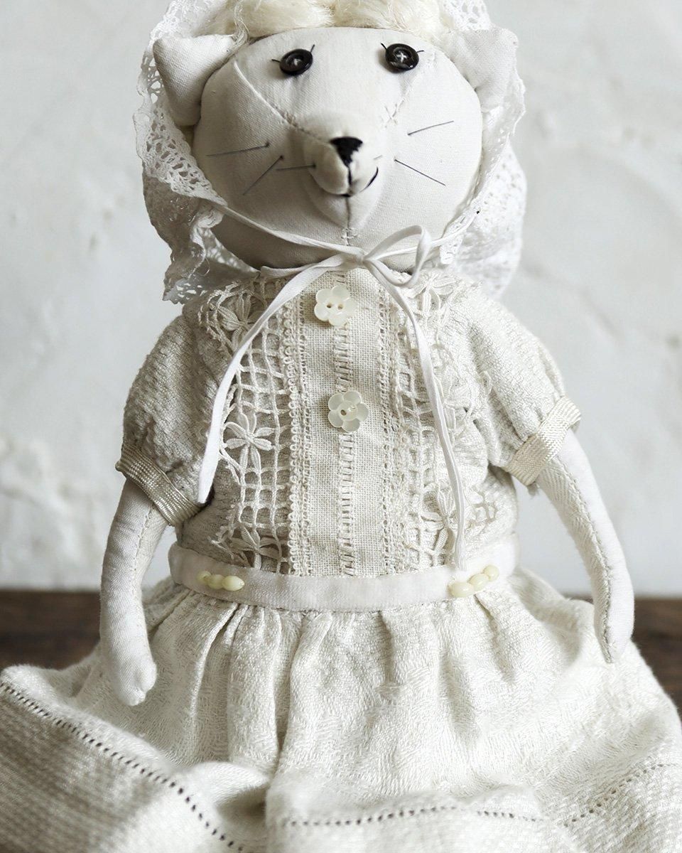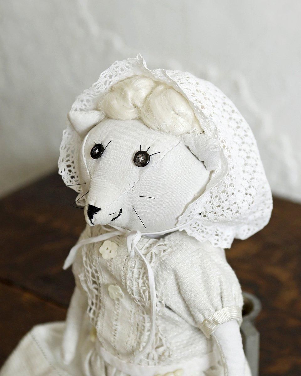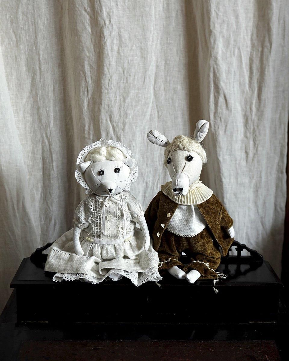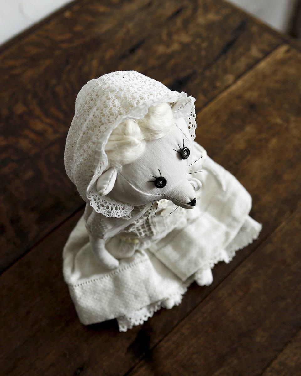 素材には古いアンティークのリネンやレース、小さなボタンに