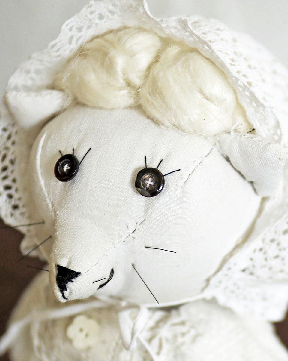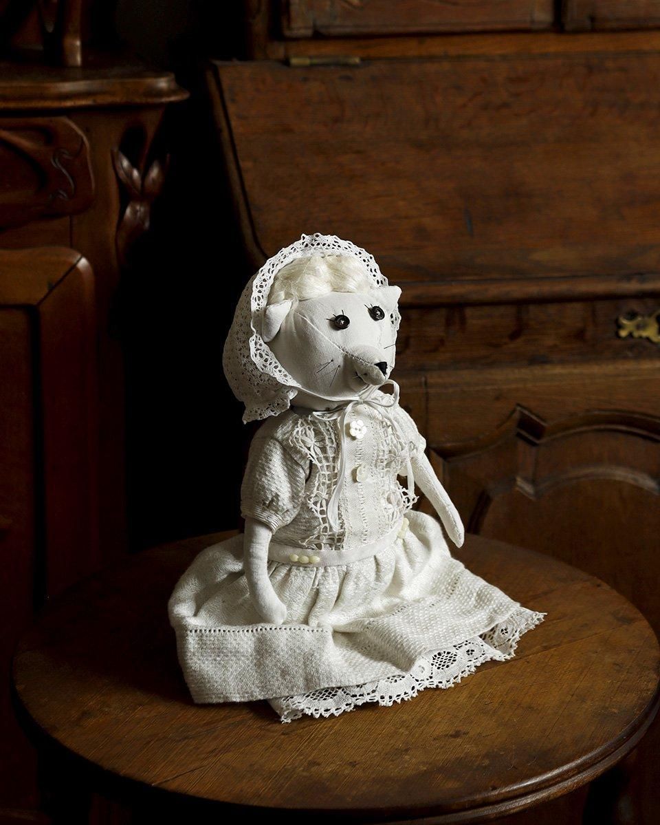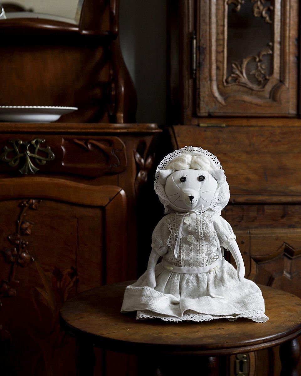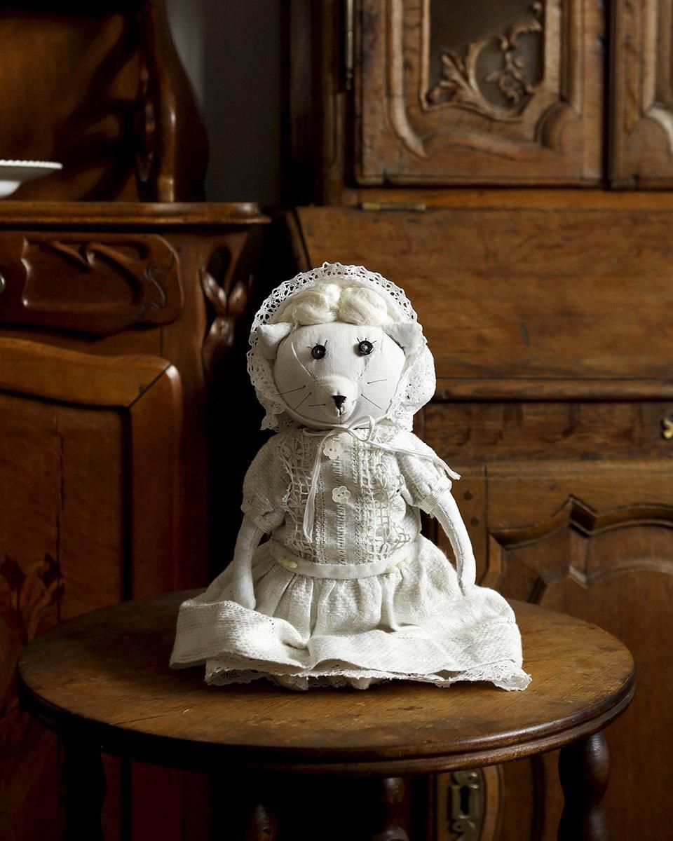 素材には古いアンティークのリネンやレース、小さなボタンに