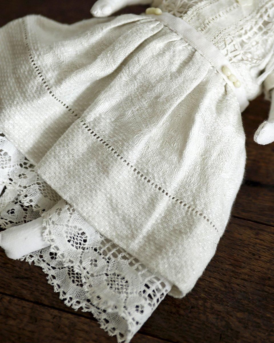 洋服にはアンティークの古いトルション(トーション)とレースが