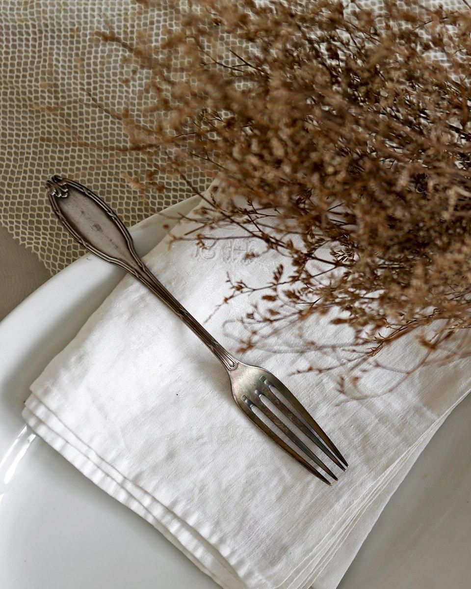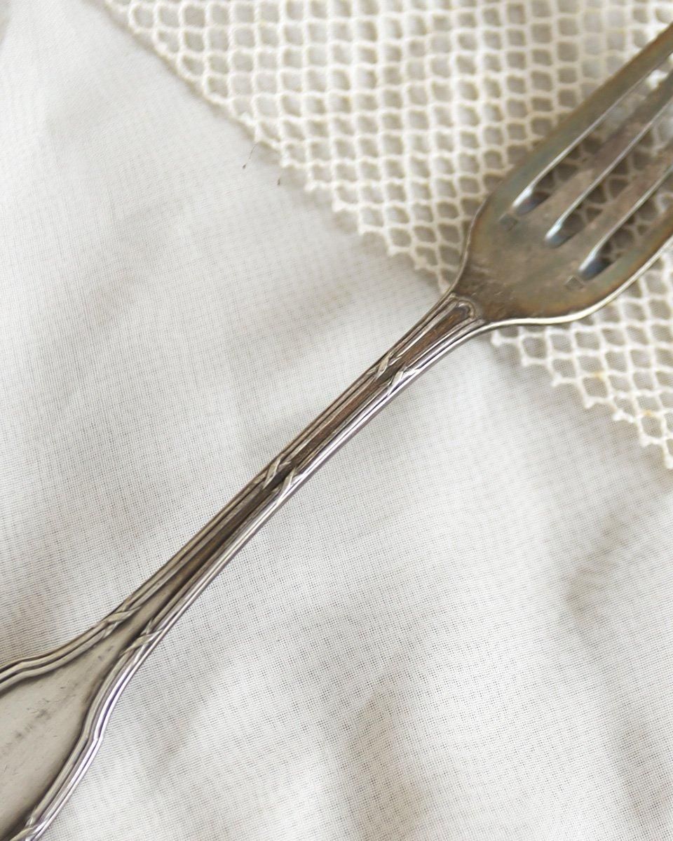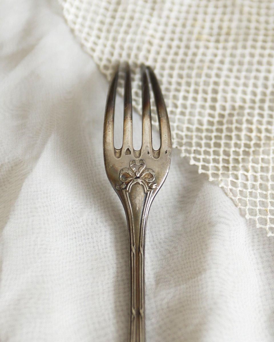 装飾が重厚で趣を感じられるシルバープレート製のフォークです。