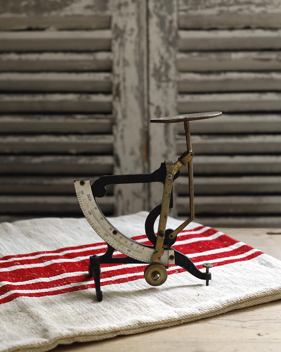 真鍮製の丸い天秤皿がとてもスタイリッシュで