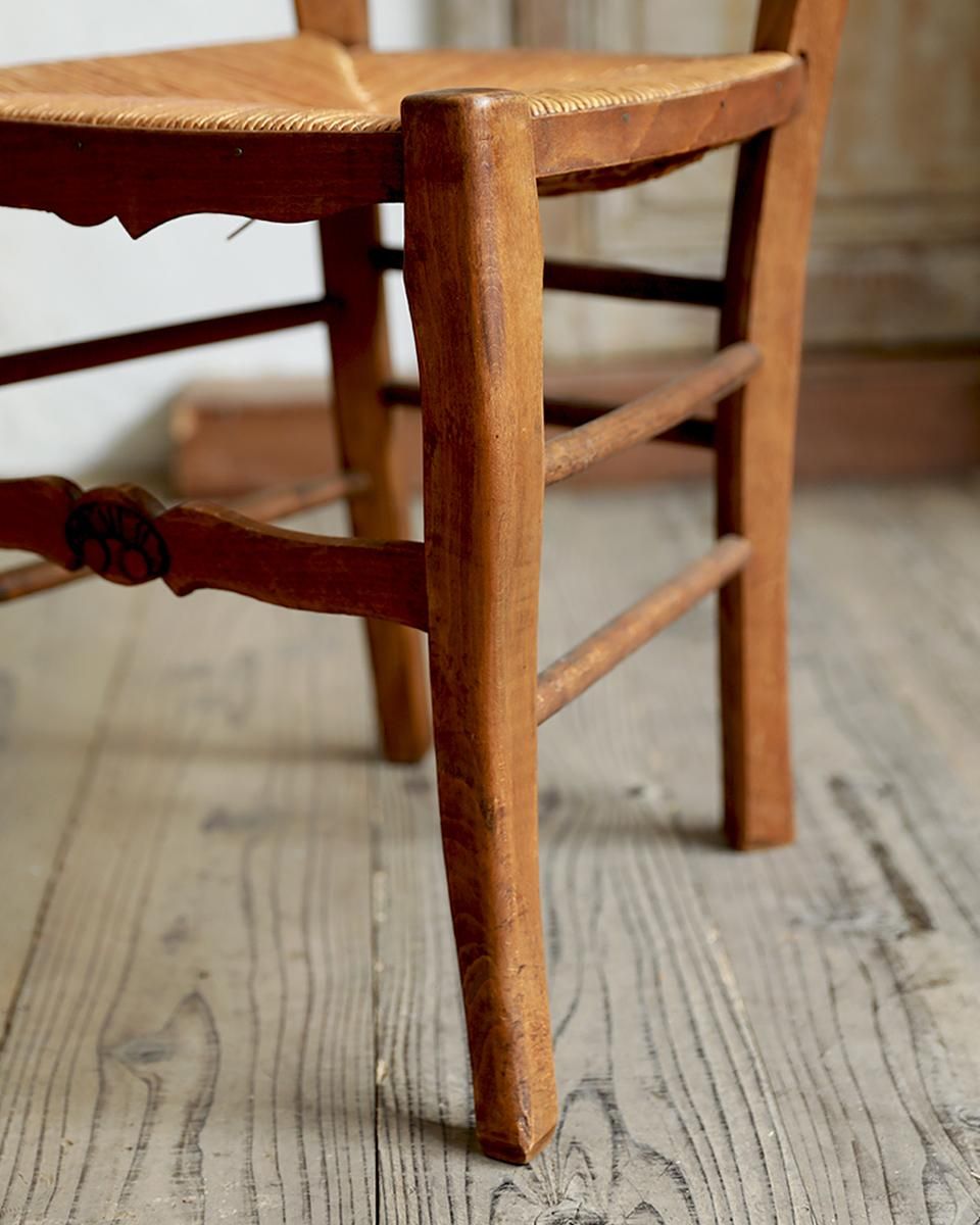添えるラッシュシートチェア。フランスでは一般家庭の