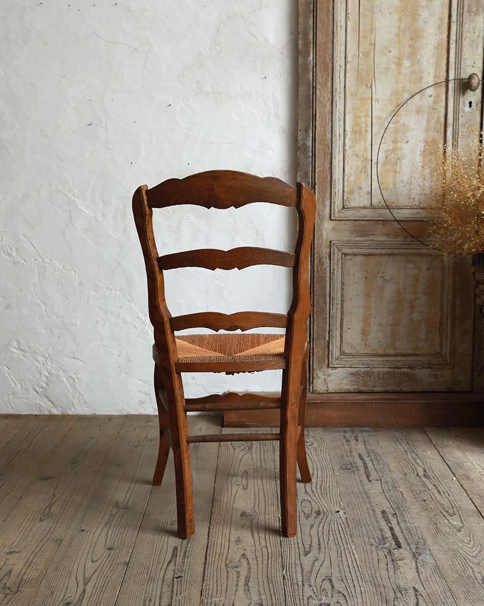 チェアです。装飾を帯びたラダーバックの背もたれが