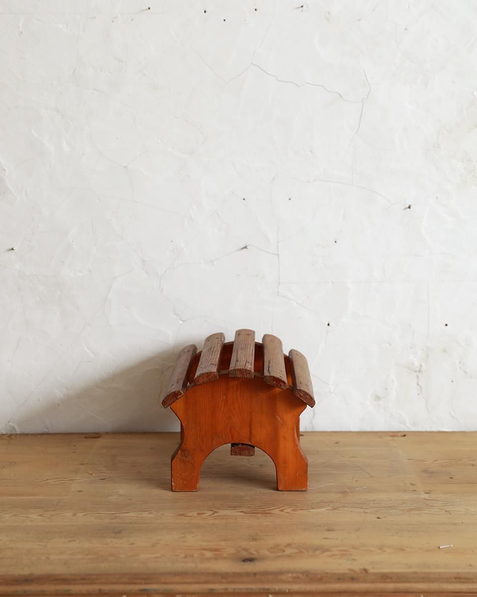 From : France 愛らしいデザインが目を惹くナチュラルな姿の木製スツール。 アーチ状に配われた簀型の座面が珍しく、 また軽やかなナチュラルカラーに温かみが感じられ どんな空間にも心地よく馴染んでくれるひと品。 キッズ用のスツールとしても実用的で可愛いシーンを お楽しみいただけます。 商品はアンティーク品のため、お写真では伝わり難い 色褪せや小傷、汚れなどがございます。 追加のお写真をご希望の方はお気軽にお問合せくださいませ。