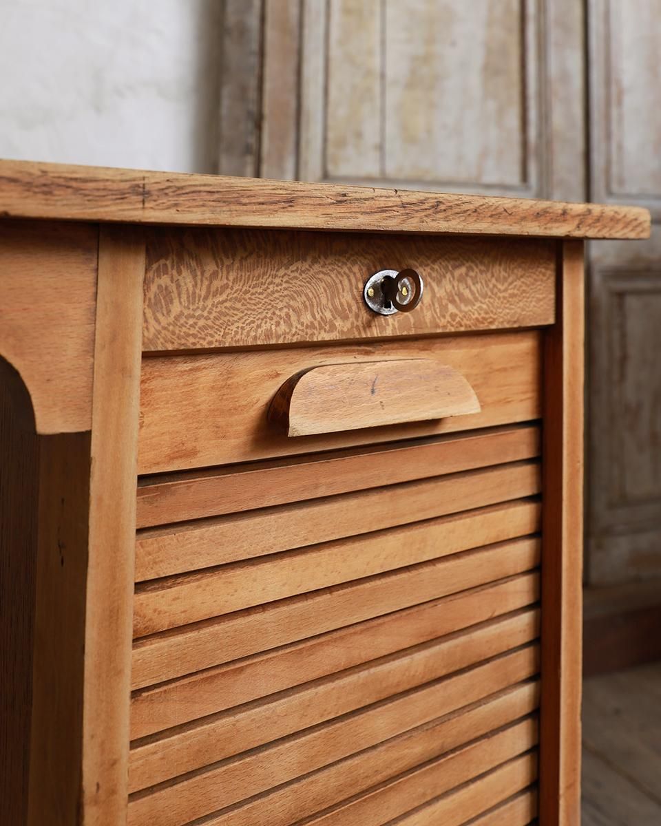 右サイドの収納スペースは蛇腹式のロールアップタイプ