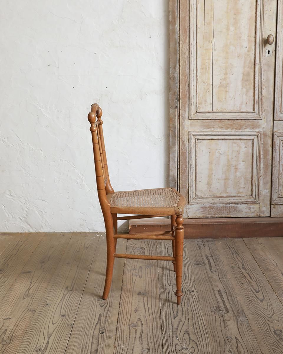 華やかな風貌と軽やかなお色味のラタンチェア。