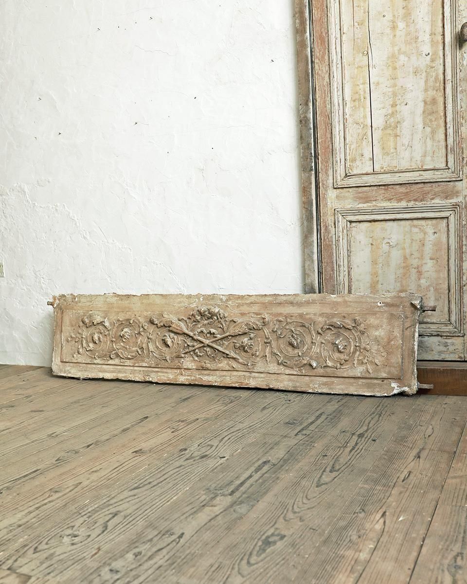 彫刻装飾に、長い年月を纏った古びたプラスターの