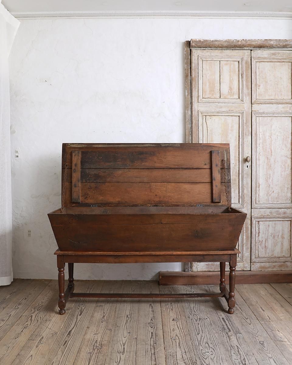 また天板に配われたアイアンの飾り蝶番が存在感を引き立て、