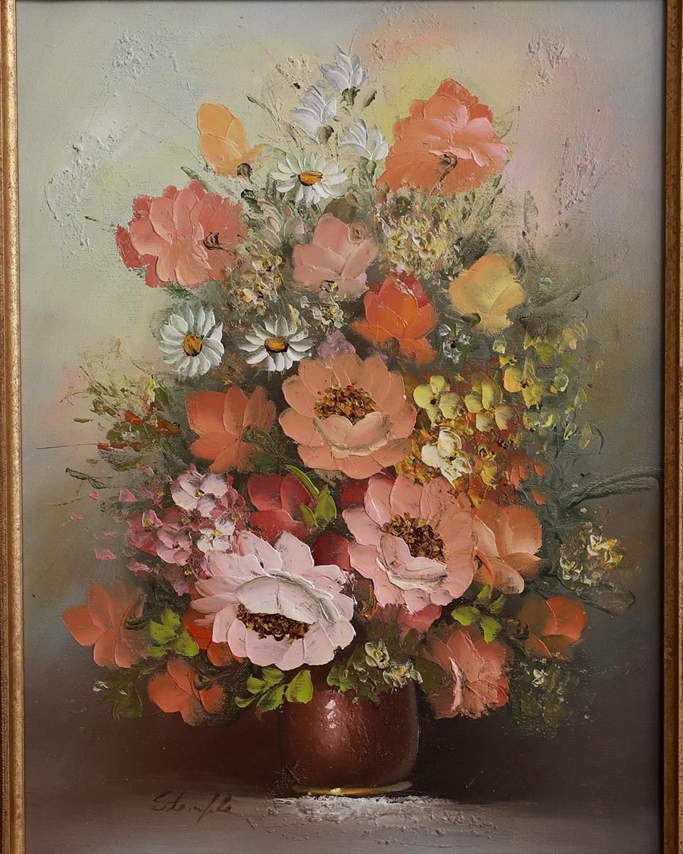 花々が描かれた油絵画が合わさった