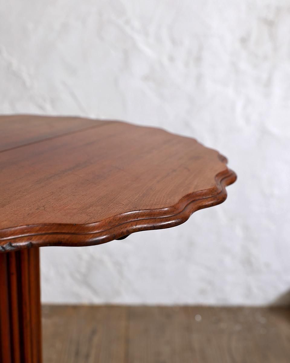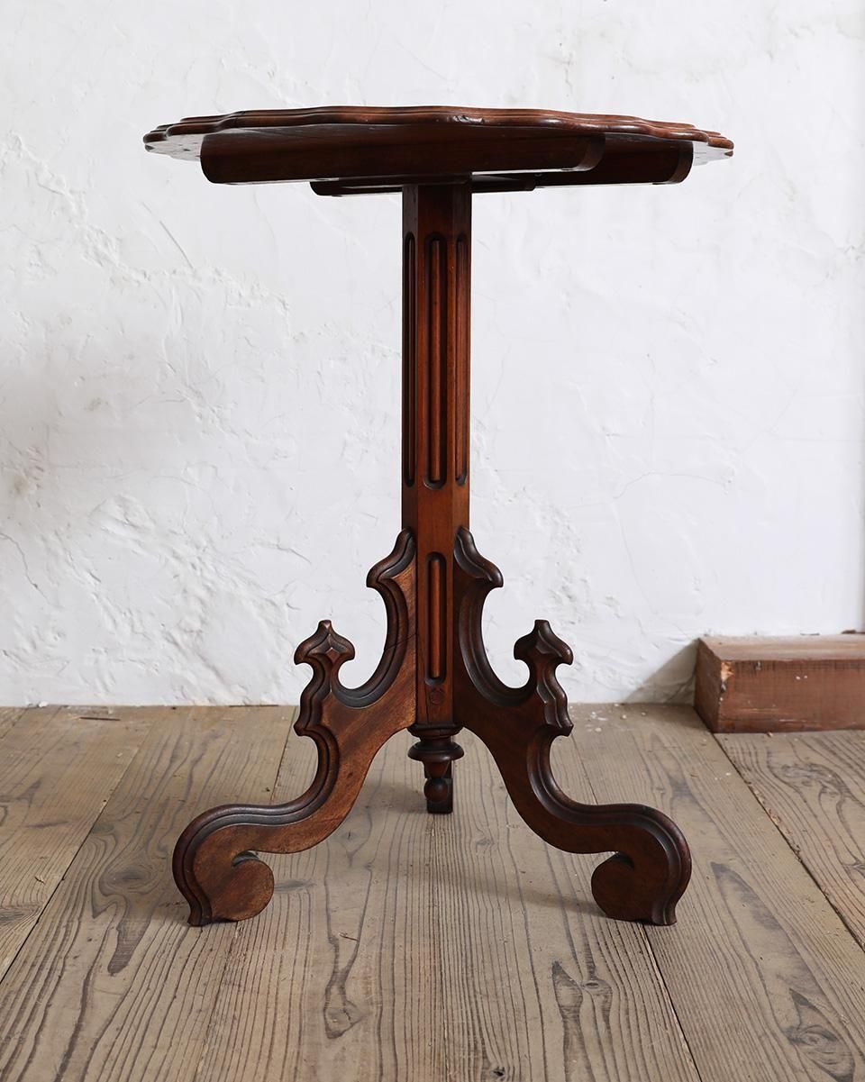 お花のように波打つ縁が愛らしいラウンド型の天板に