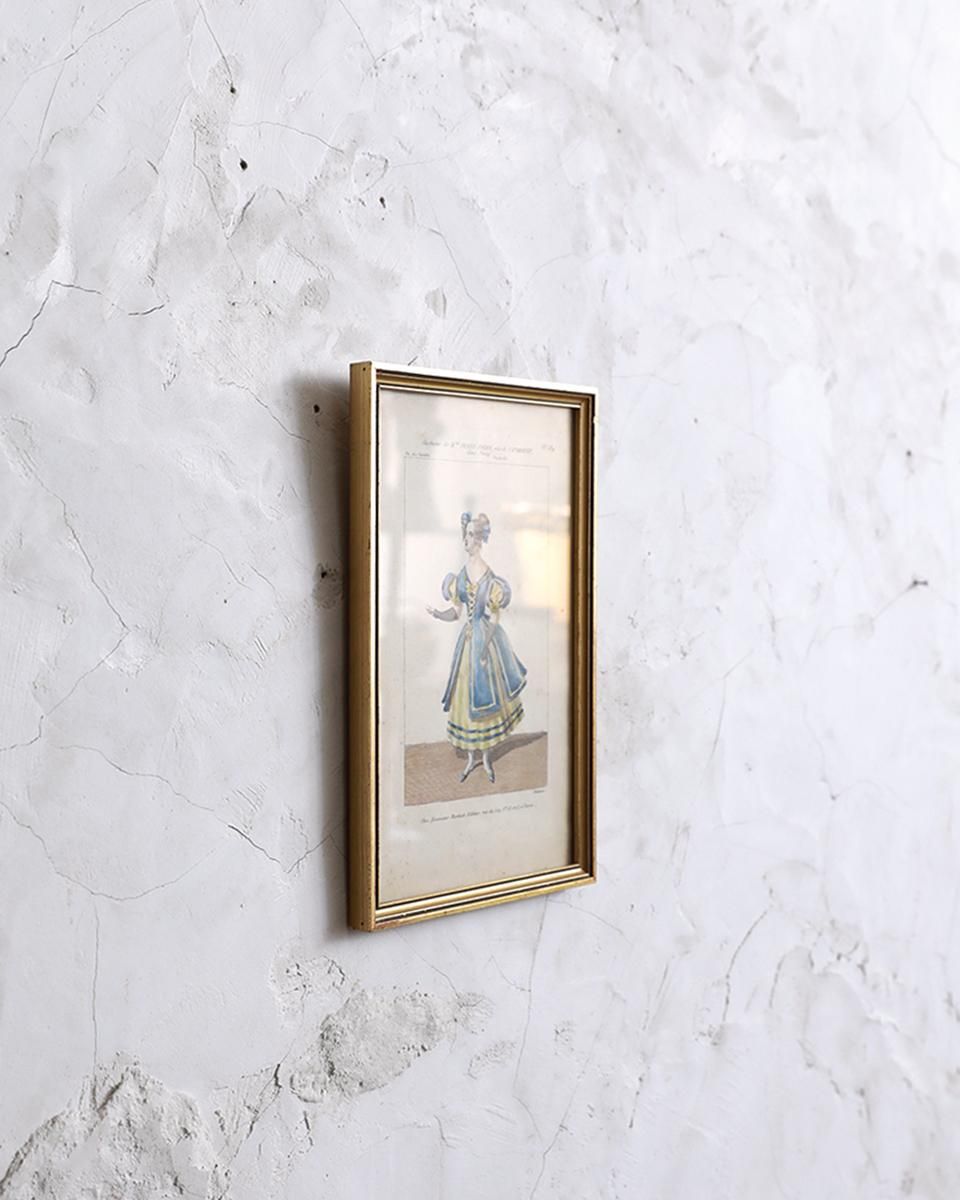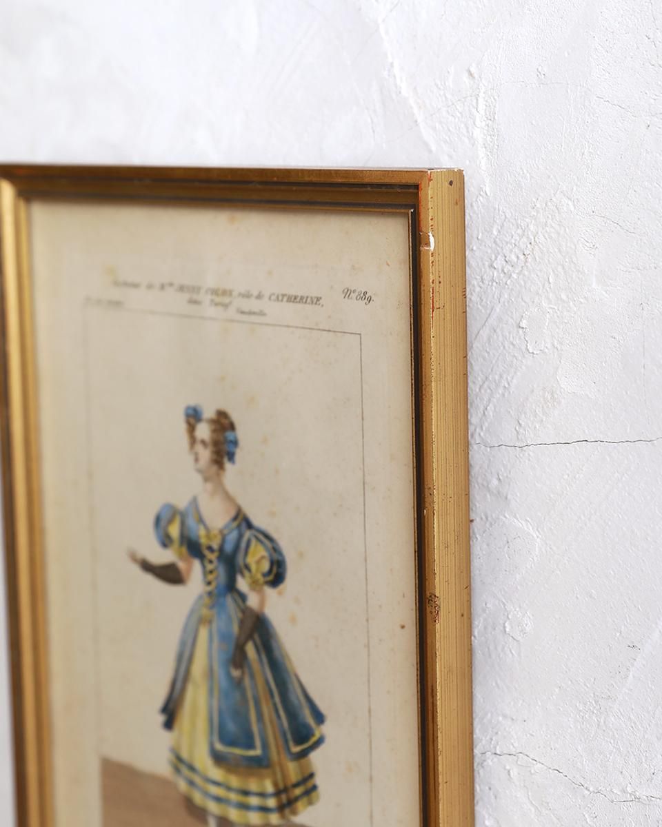 From : France フランスで買い付けたヴォードヴィルにてキャサリン役の 衣装が描かれたイラスト入りフレーム。 当時の華やかな衣装が目を惹くひと品で、 玄関やウォッシュルームなどのインテリアを上品に飾ります。 商品はアンティーク品のため、お写真では伝わり難い、 色褪せや小傷などがございます。 追加のお写真をご希望の方はお気軽にお問合せくださいませ。