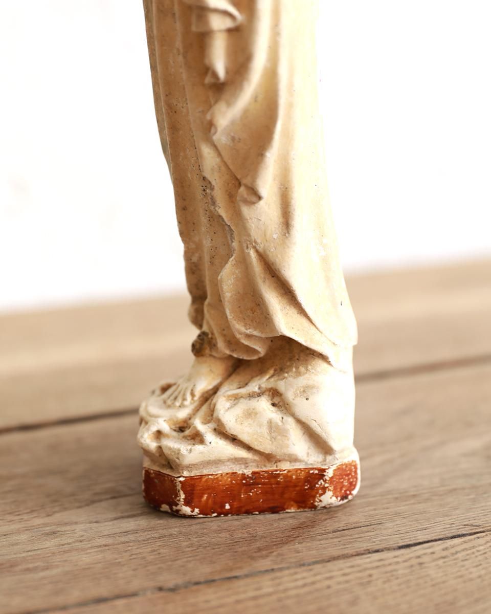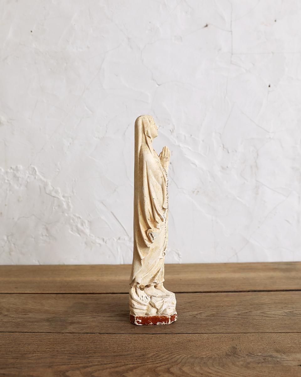From : France フランスで買い付けた1900年代頃の聖母マリア様の石膏像。 祈りを捧げる様子が輝かしい姿の逸品です。 落ち着いたトーンでカラーリングされており、所々に 剥がれた跡がアンティークならではの趣を感じさせてくれます。 商品はアンティーク品のため、お写真では伝わり難い 色褪せや小傷、汚れなどがございます。 追加のお写真をご希望の方はお気軽にお問合せくださいませ。