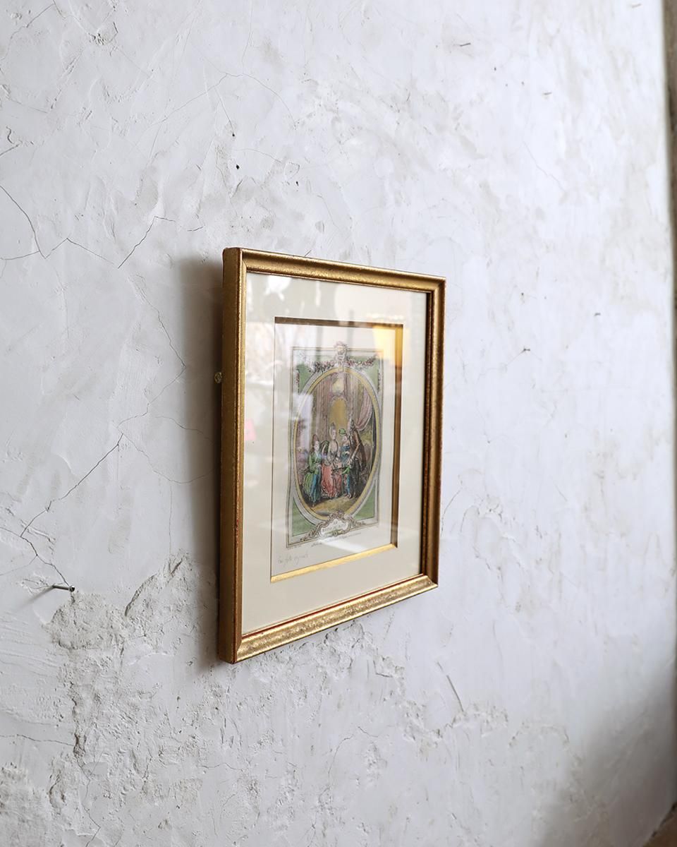 From : France フランスで買い付けた貴族たちの朝の食事風景が 描かれたイラスト入りフレーム。 当時の華やかな生活風景を彷彿とさせるひと品で、 玄関やウォッシュルームなどに置くだけでムード漂う インテリアを演出します。 商品はアンティーク品のため、お写真では伝わり難い、 色褪せや小傷などがございます。 追加のお写真をご希望の方はお気軽にお問合せくださいませ。