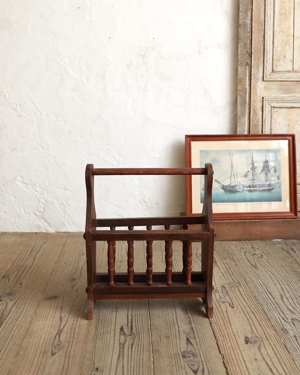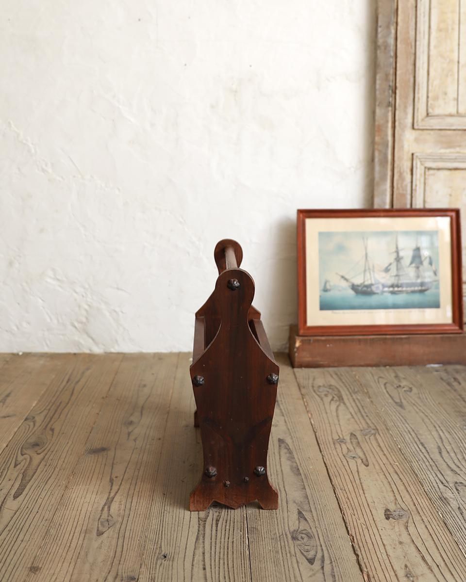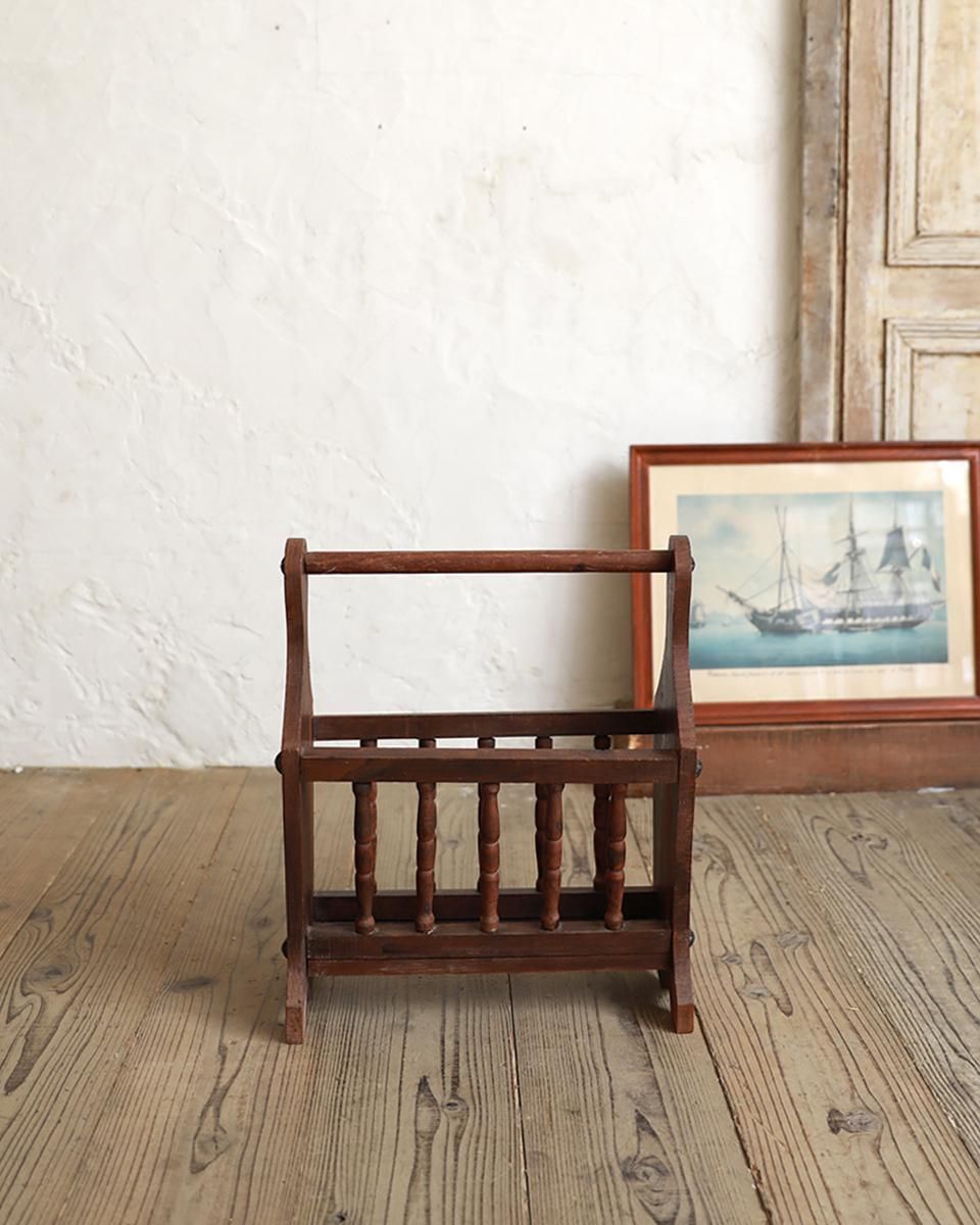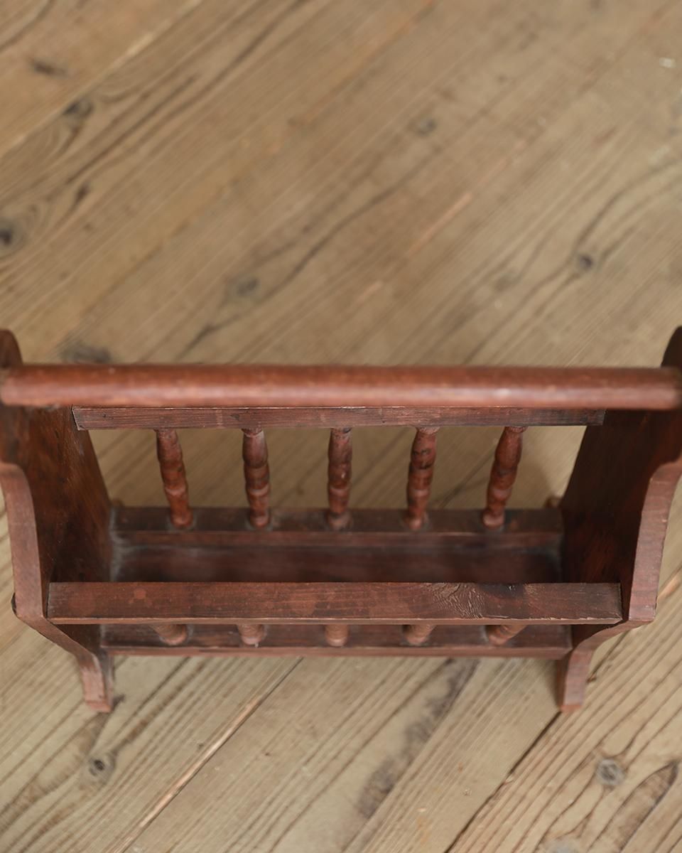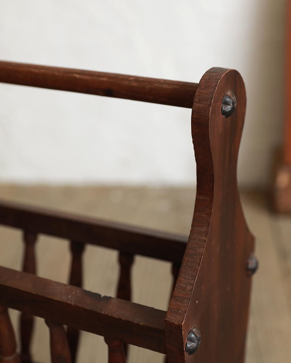 クラシカルなデザインが魅力的な木製のマガジンラックです。