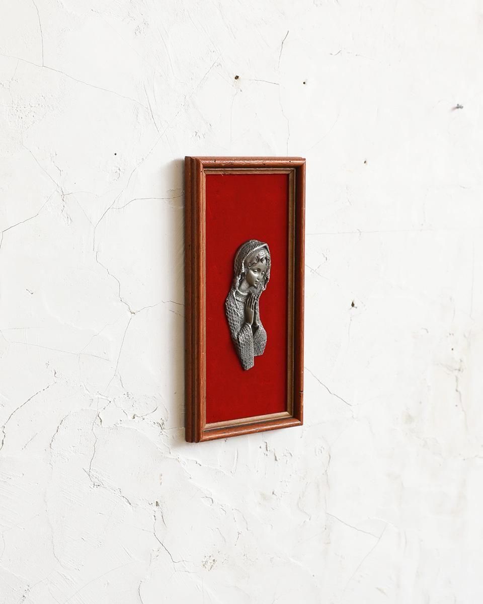 赤色のベルベッド生地とその周りを囲むシンプルな