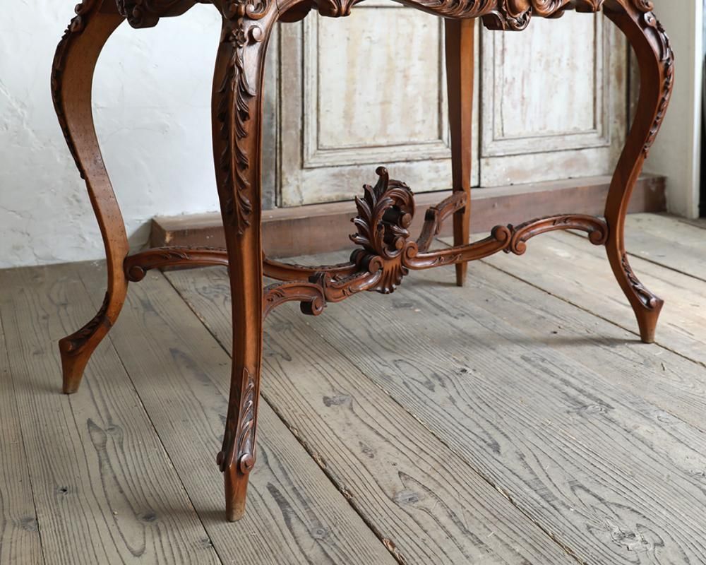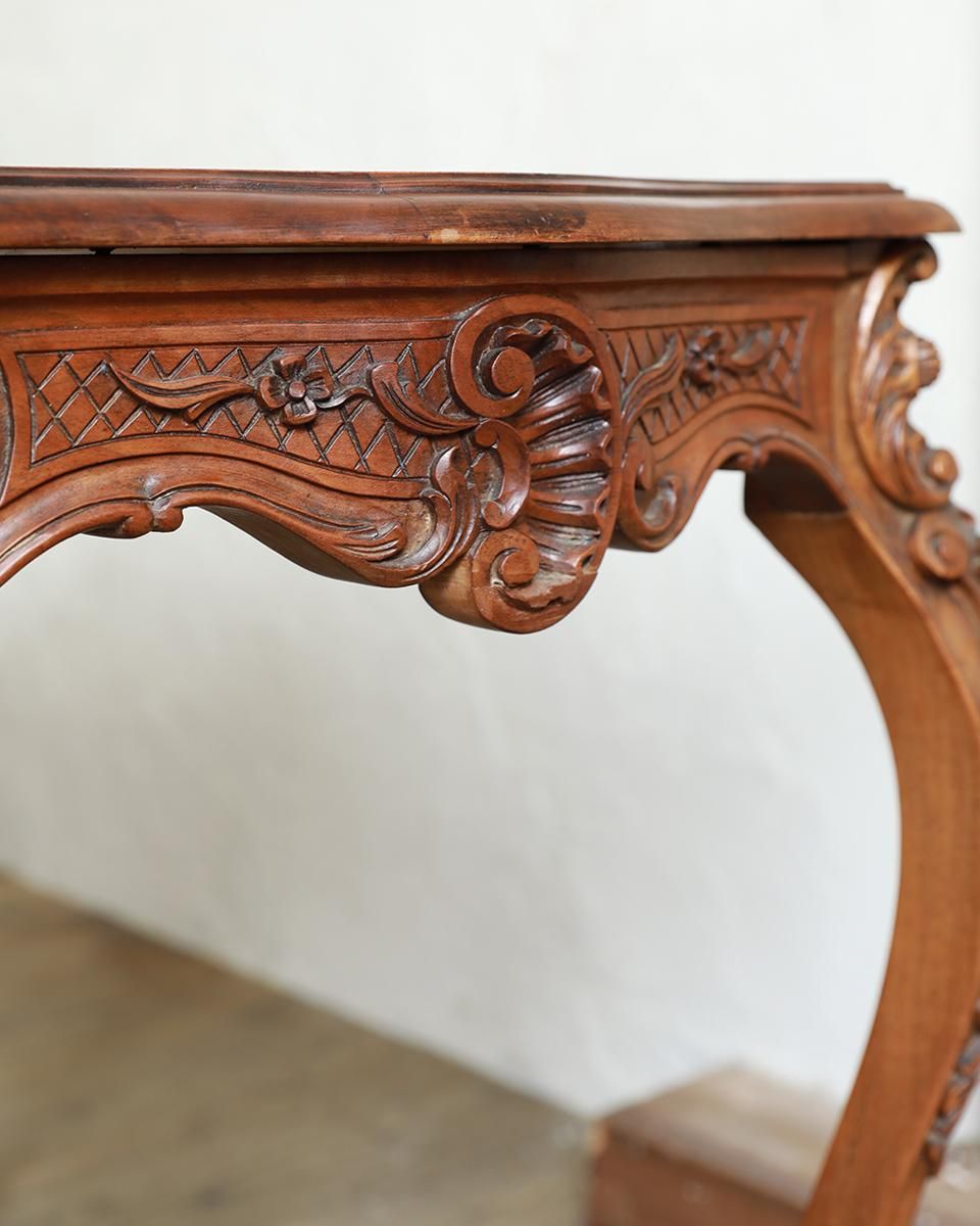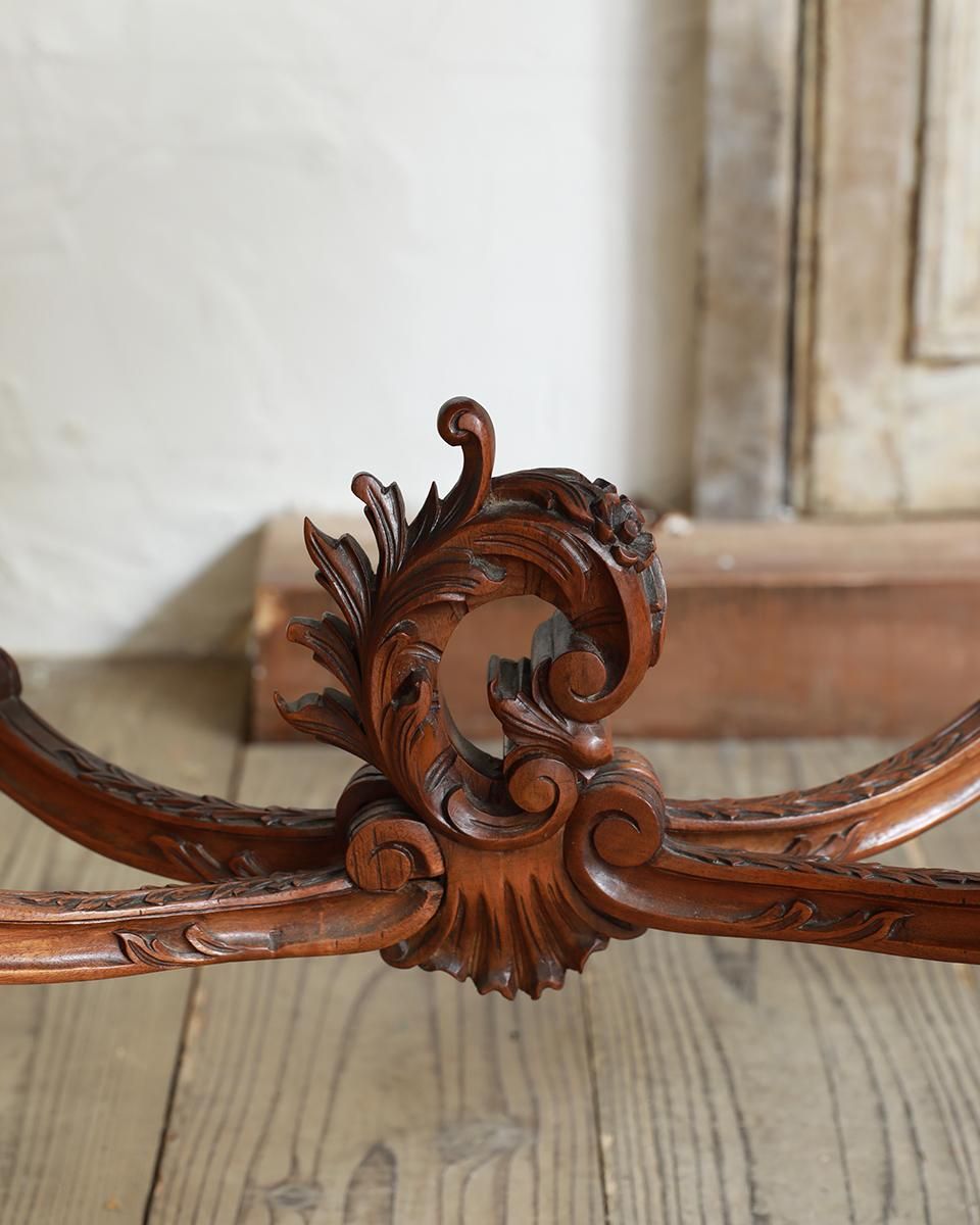 大胆かつ立体的に彫られたロカイユの装飾が際立ち、