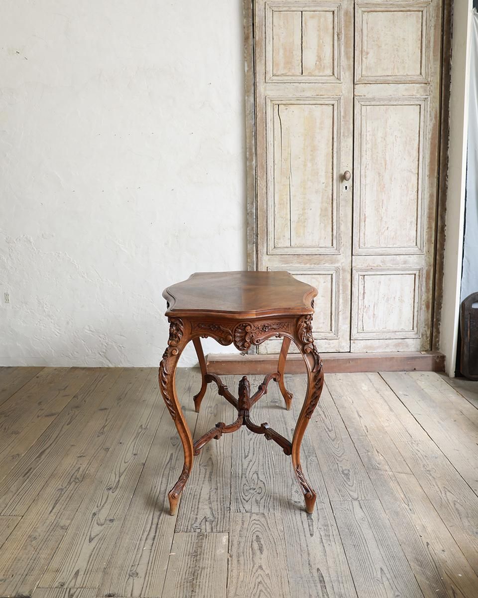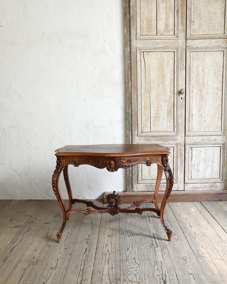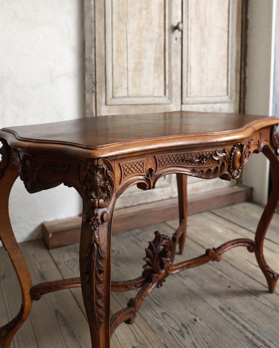 大胆かつ立体的に彫られたロカイユの装飾が際立ち、