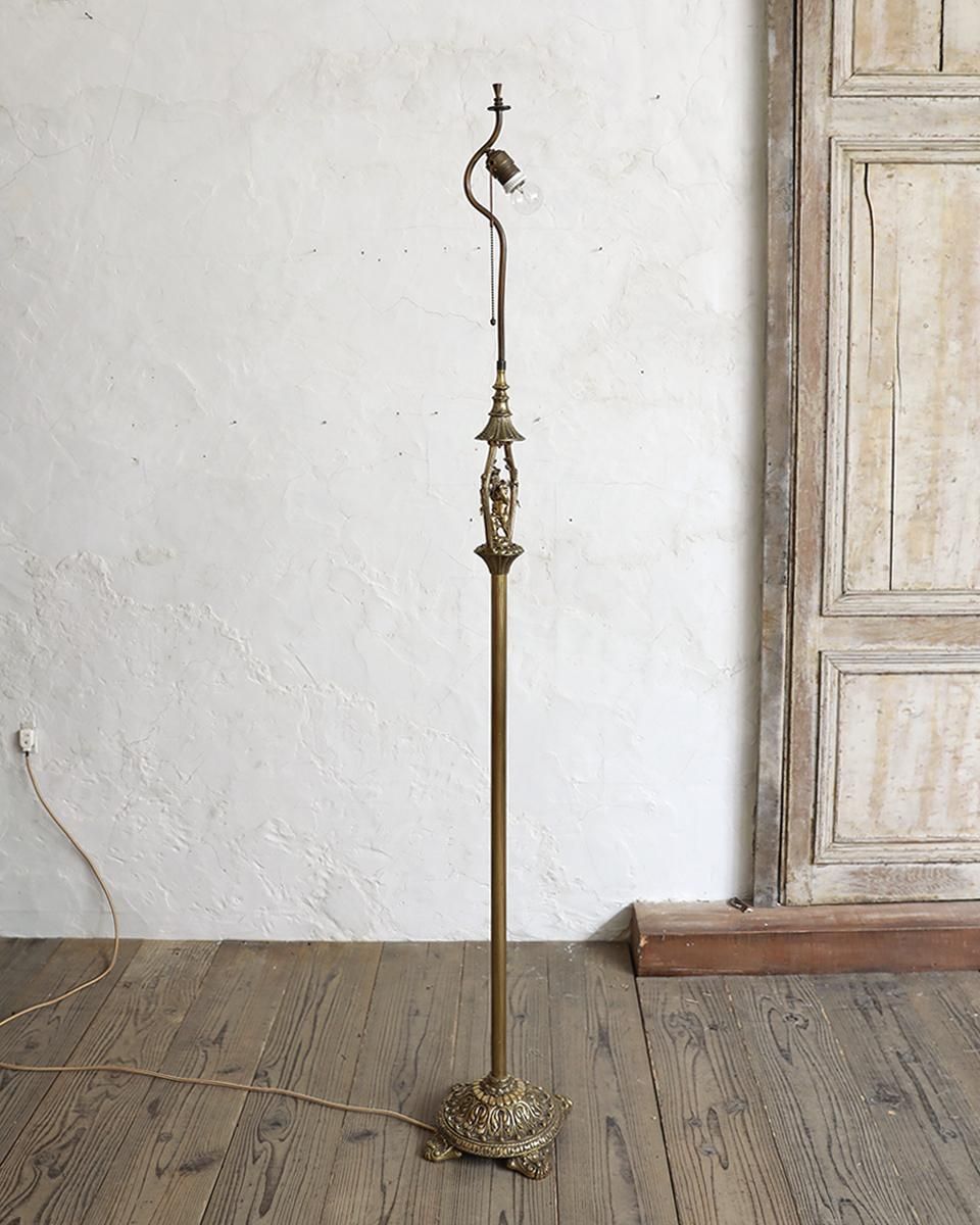 愛らしいエンジェルが配われた真鍮フロアランプ。