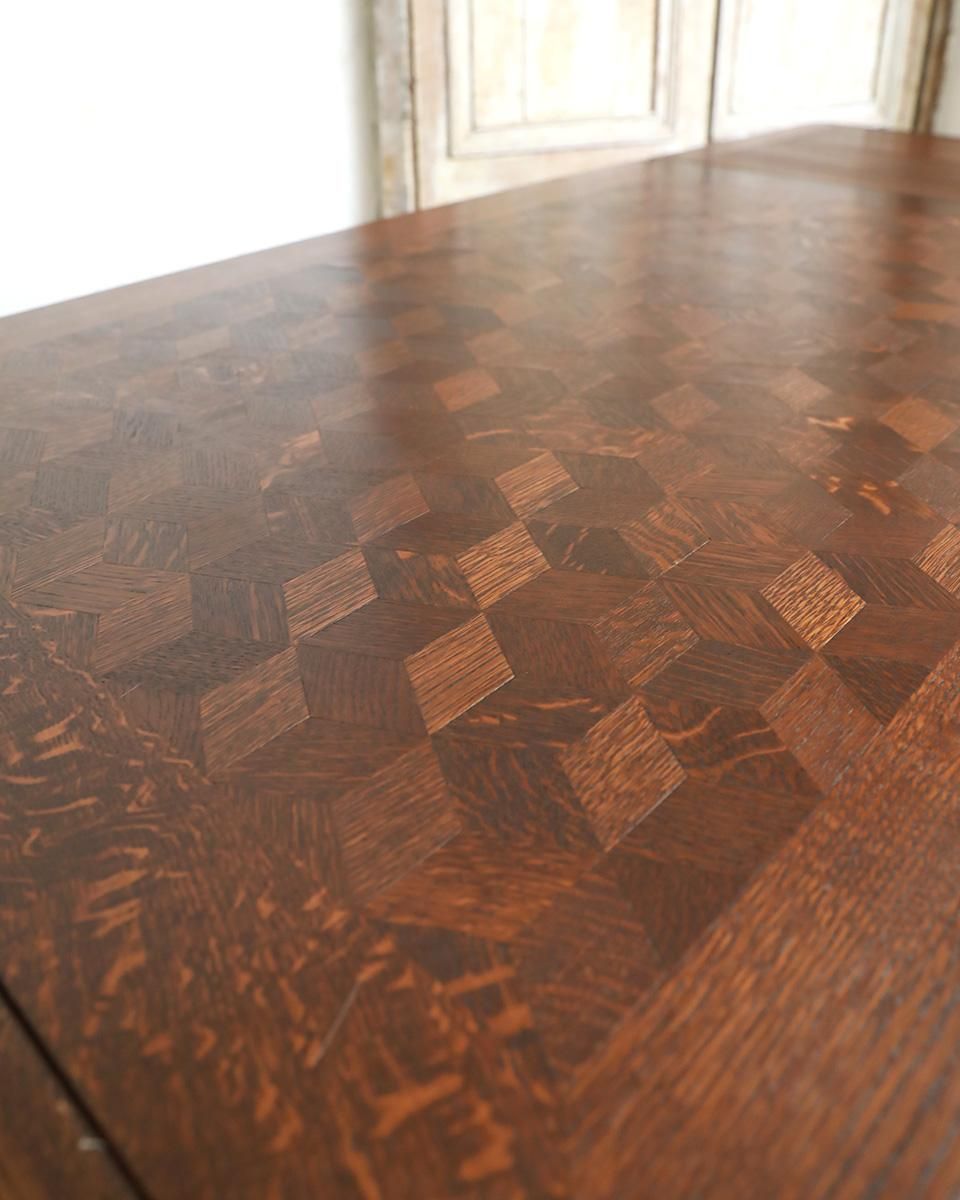 天板に配われた見事なパーケットリー(寄木細工)が気品に満ちた