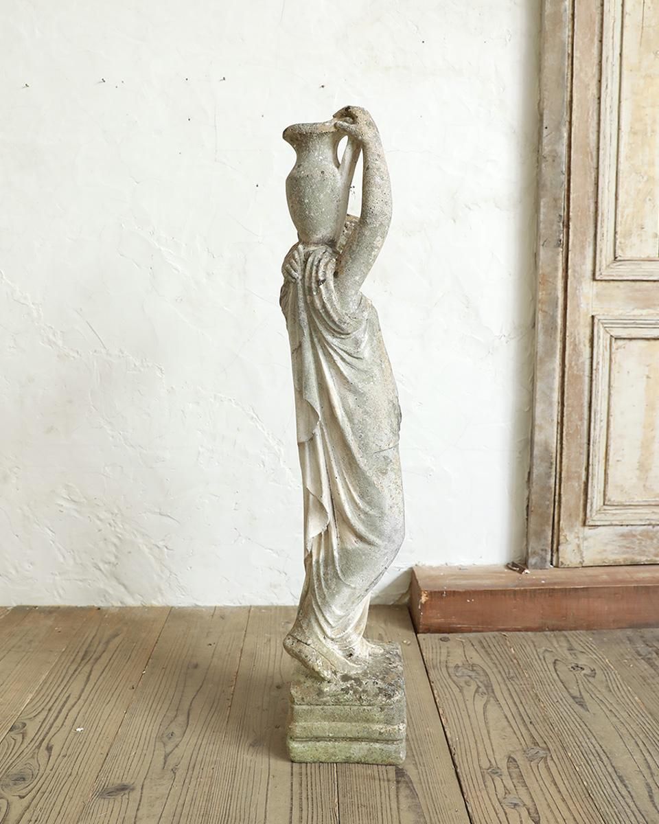 From : France(1890s) 女性が水差しを担ぐ凛々しい姿のストーンオブジェです。 石造りならではの重厚感と、経年変化による風合い、 テクスチャーが生み出す臨場感あふれる姿が存在感 を引き立てます。 商品はアンティーク品のため、お写真では伝わり 難い色褪せや小傷、汚れや擦れなどがある場合がございます。 追加のお写真をご希望の方はお気軽にお問合せくださいませ。