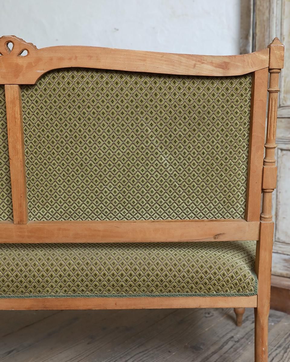 緩やかな曲線を描いた背もたれにはリボンの彫刻が配われ、